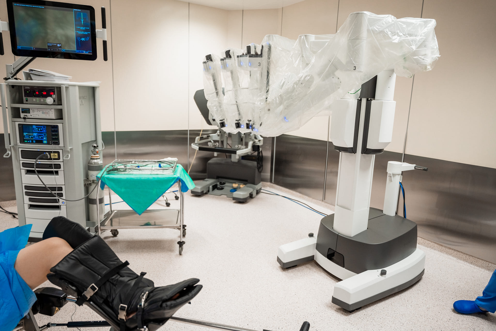 W naszym szpitalu od 2023 roku odbywają się zabiegi z wykorzystaniem robota chirurgicznego da Vinci – najpopularniejszego systemu robotycznego na świecie. Stosujemy go m.in. w leczeniu