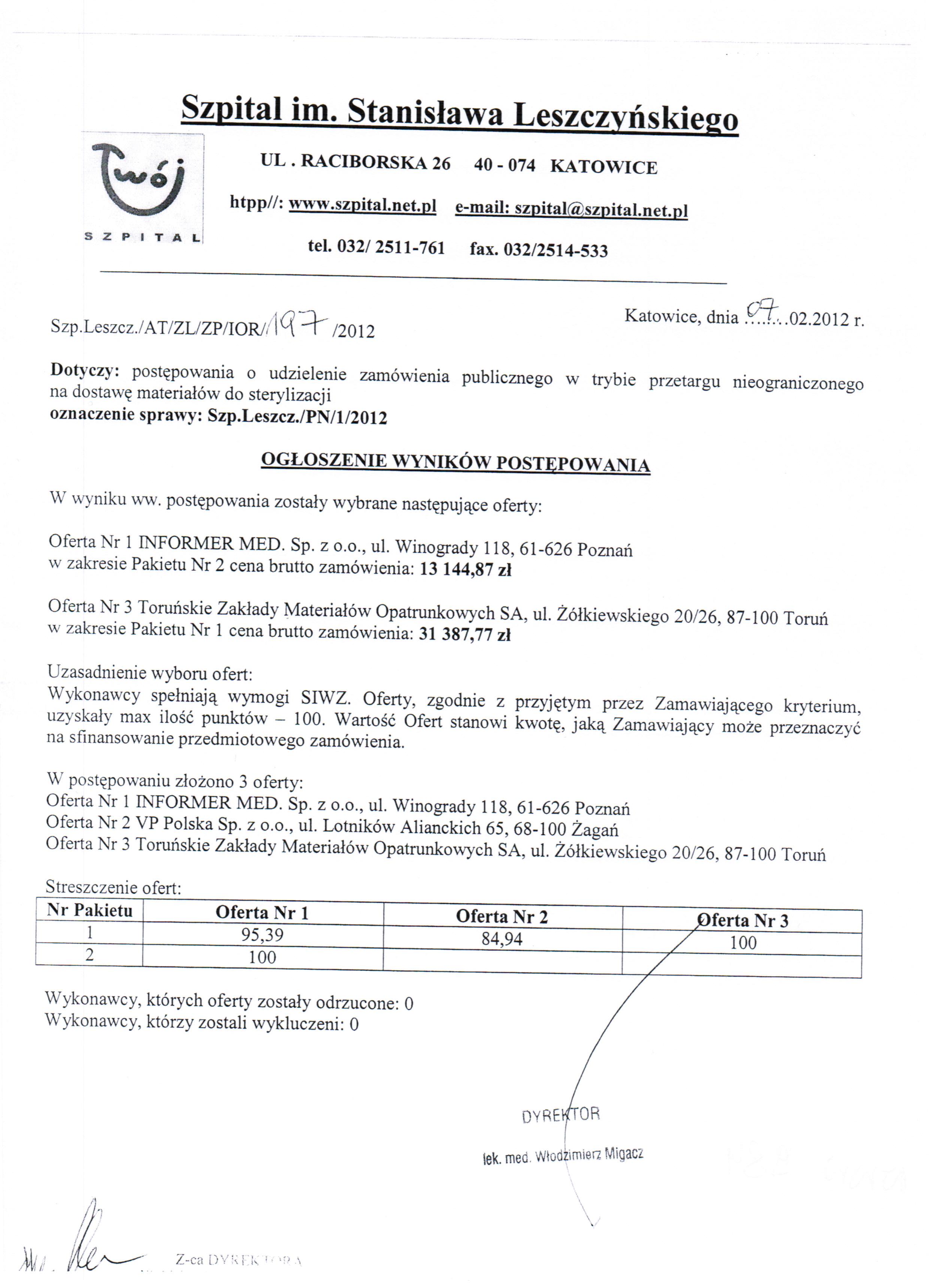 Ogłoszenie wyników postępowania (07.02.2012)