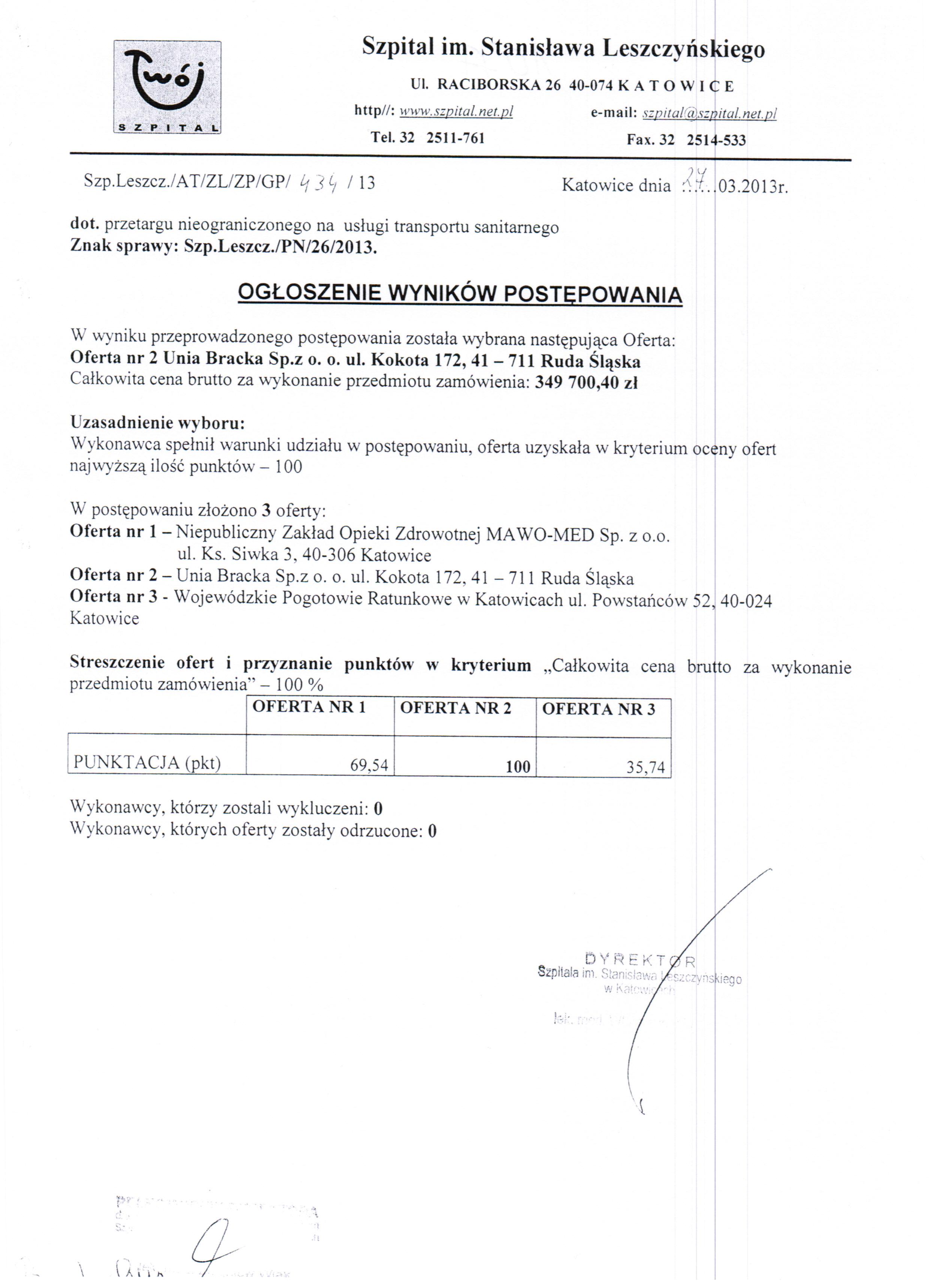 do dnia 20.03.2013r. do godz. 10:00 w Kancelarii Dyrektora Szpitala w Katowicach przy ul. Raciborskiej 26 (I piętro).