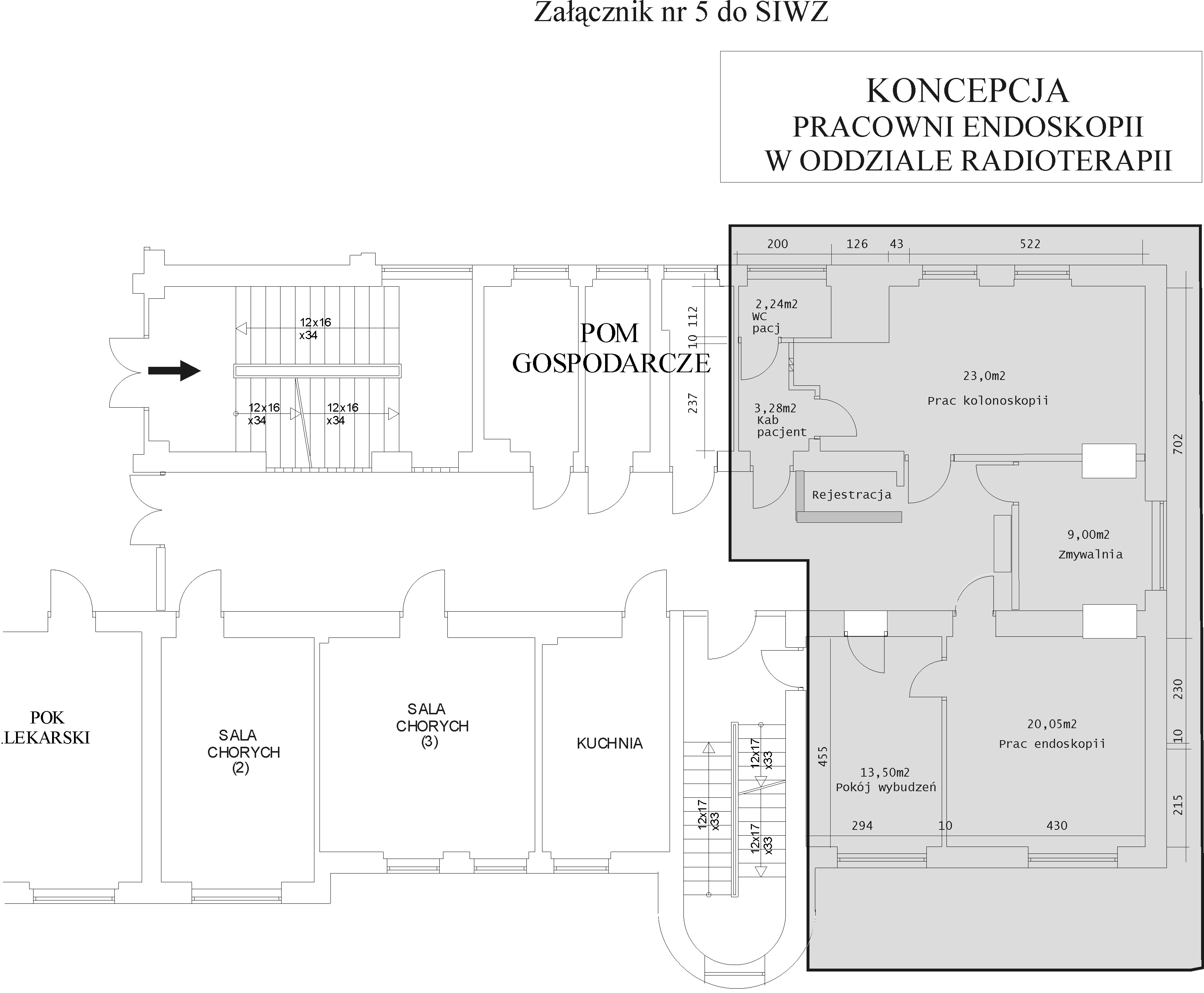 Proponowana funkcja Pracowni Endoskopii musi zawierać pomieszczenia zgodnie z załączoną koncepcją – Załącznik nr 5 do SIWZ, tj.: