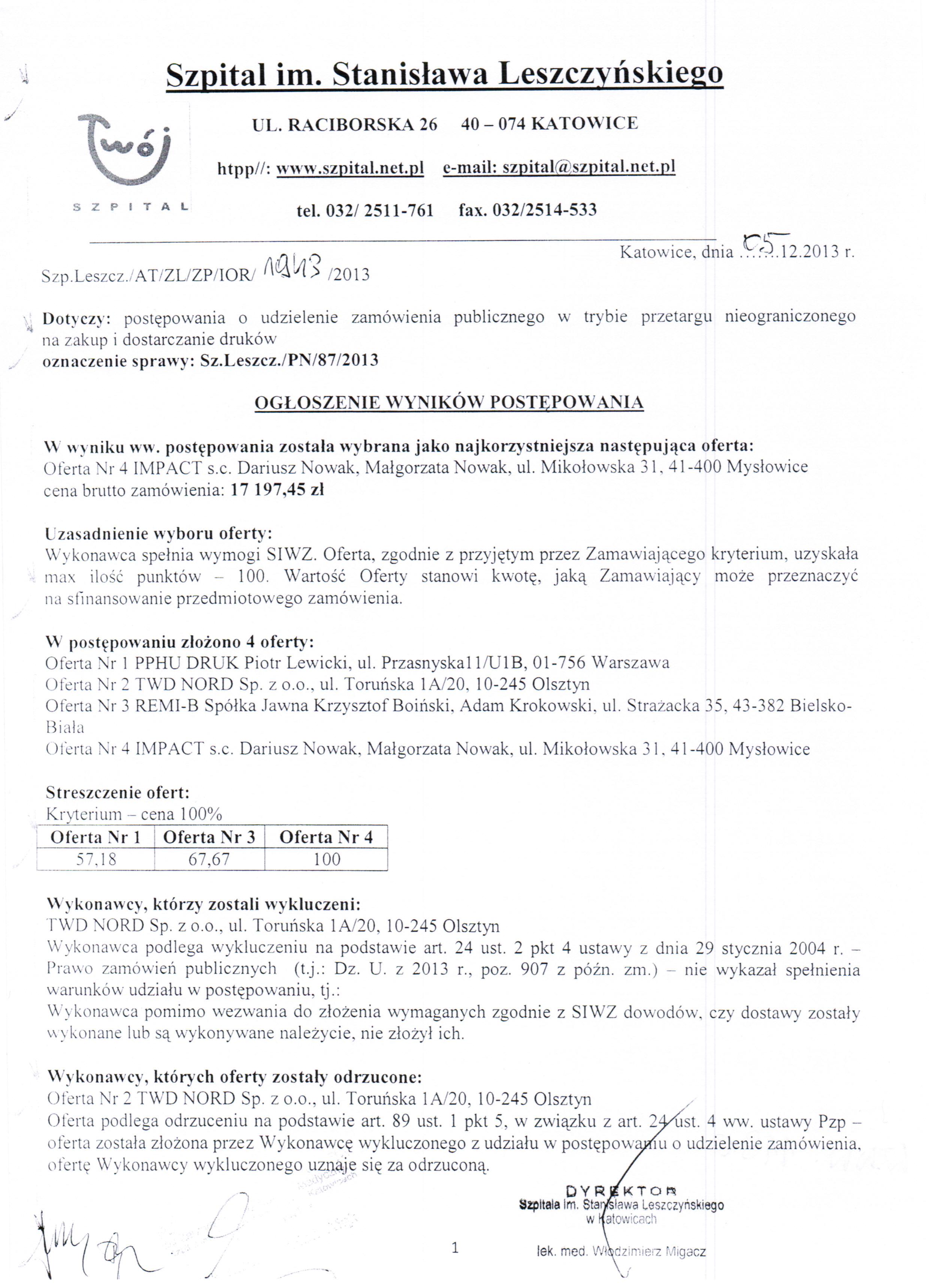 oznaczenie sprawy: Szp.Leszcz /PN/ 87 /2013