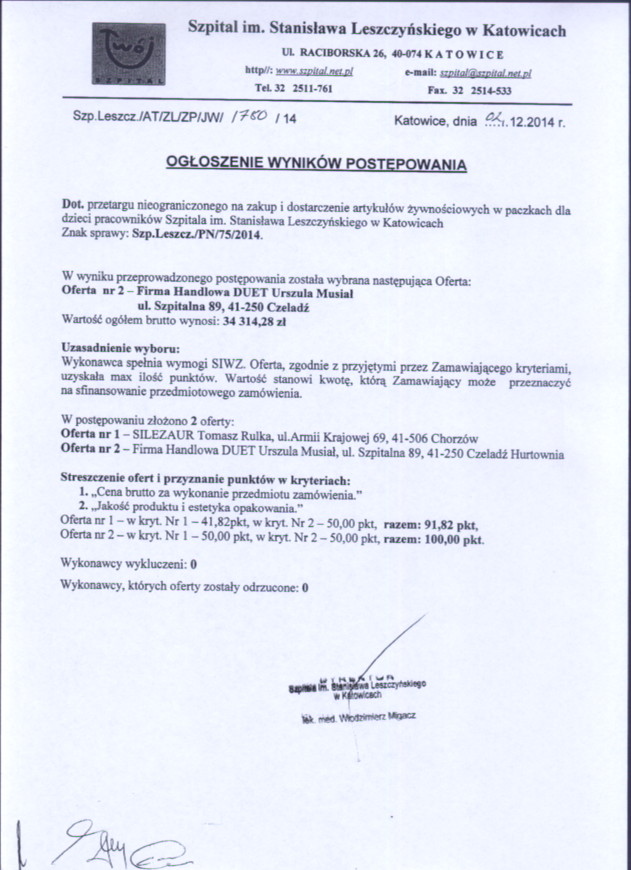 w dniu 25.11.2014 r. o godz. 11:00 w Szpitalu im. Stanisława Leszczyńskiego w Katowicach ul. Raciborska 28, budynek Przychodni, II piętro, Sekcja Zamówień Publicznych.