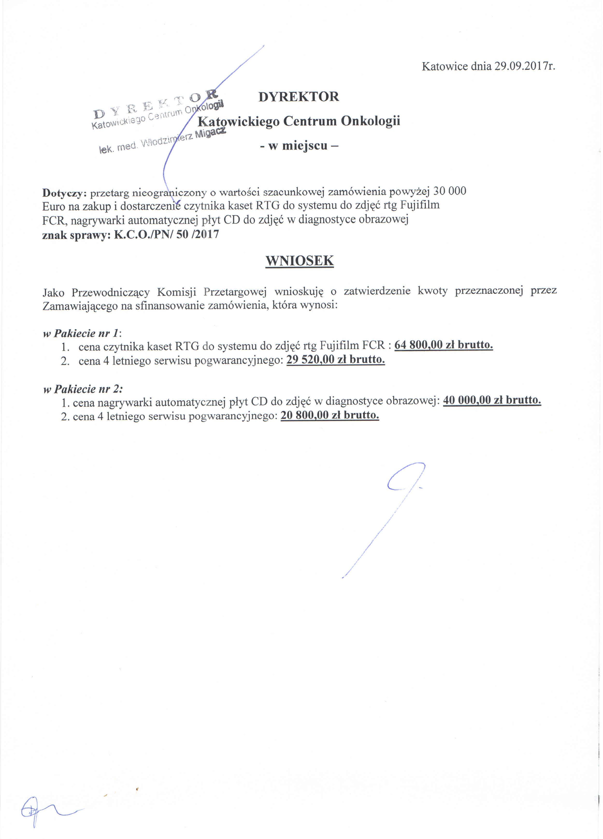 w dniu 02.10.2017r. o godz. 11:00, w 40-074 Katowice, ul. Raciborska 28 (budynek Przychodni, II piętro, Sekcja Zamówień Publicznych)