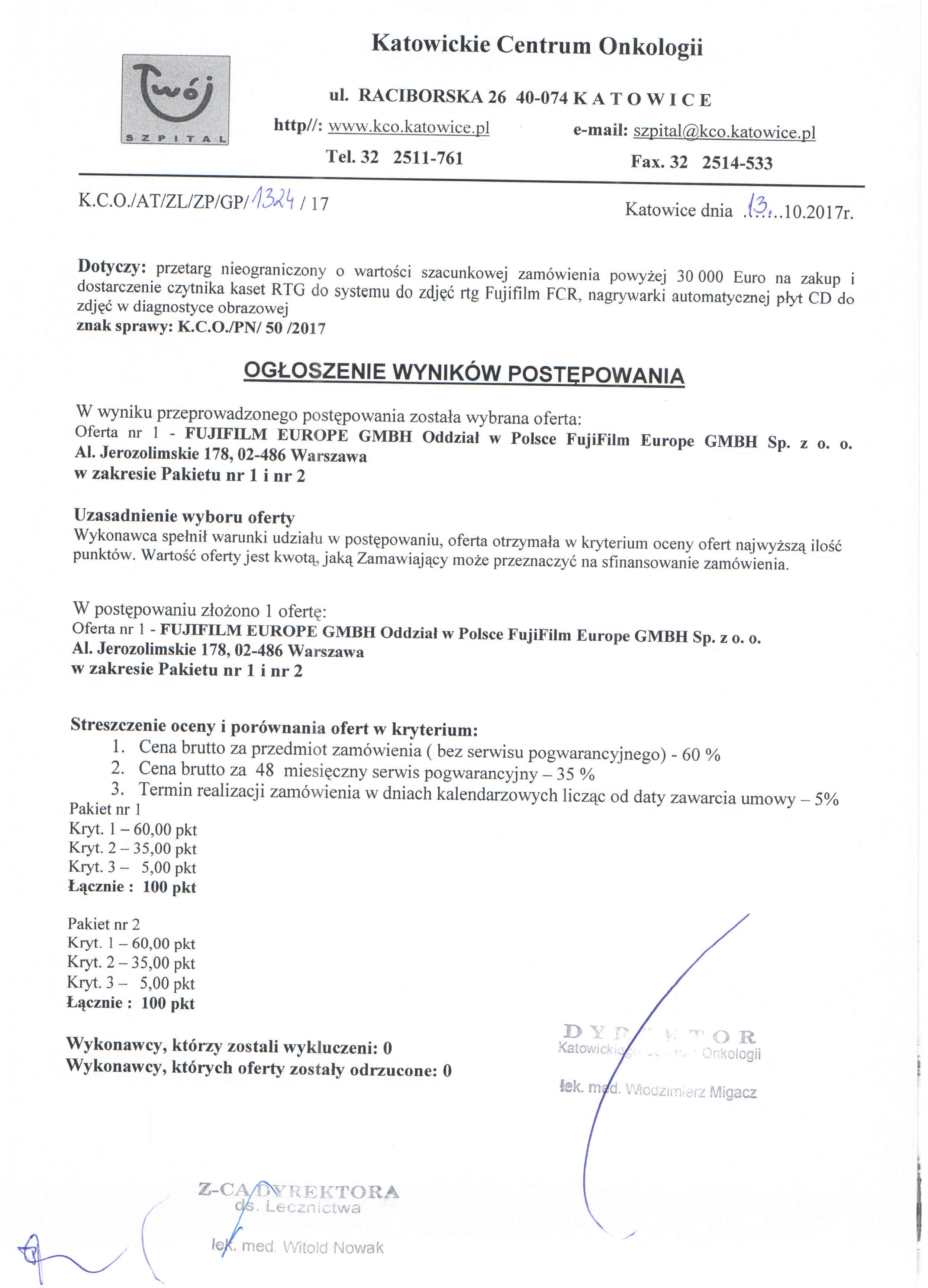 SIWZ można uzyskać pod adresem: Katowickie Centrum Onkologii, 40-074 Katowice,