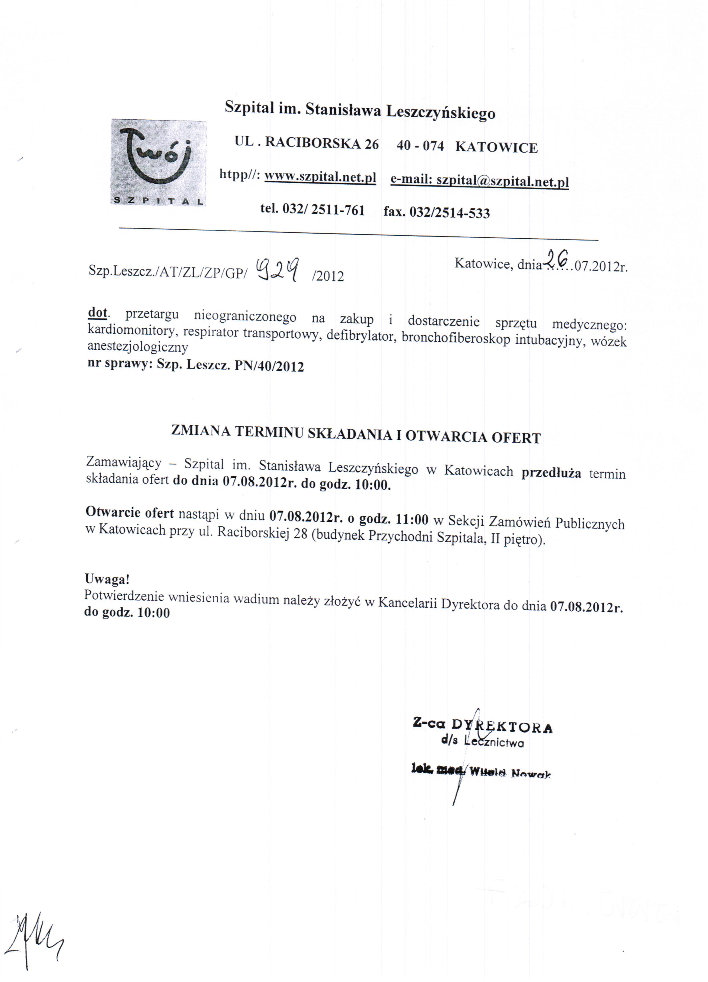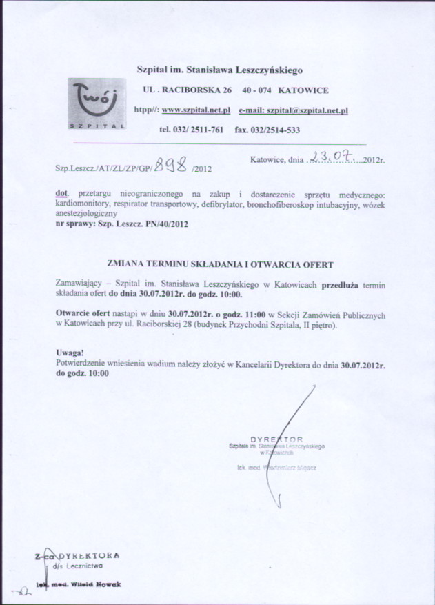 w dniu 24.07.2012r. o godz. 11:00 w 40-074 Katowice, ulica Raciborska 28, budynek Przychodni, II piętro, Sekcja Zamówień Publicznych.