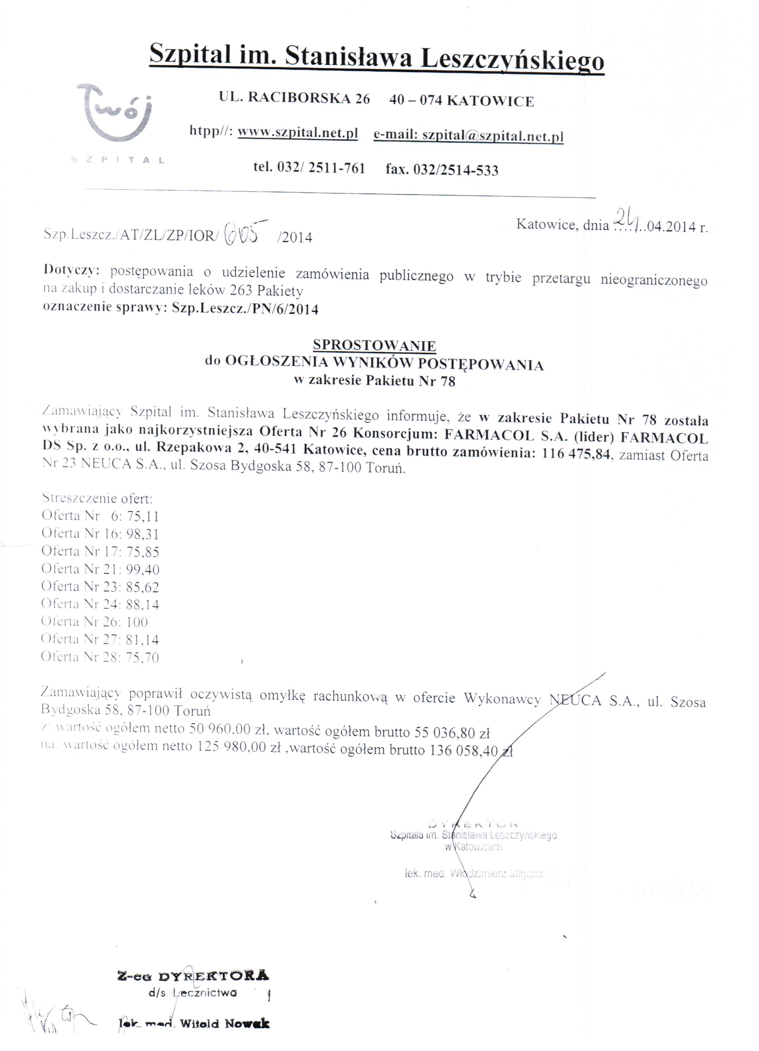 oznaczenie sprawy: Szp.Leszcz /PN/6/2014