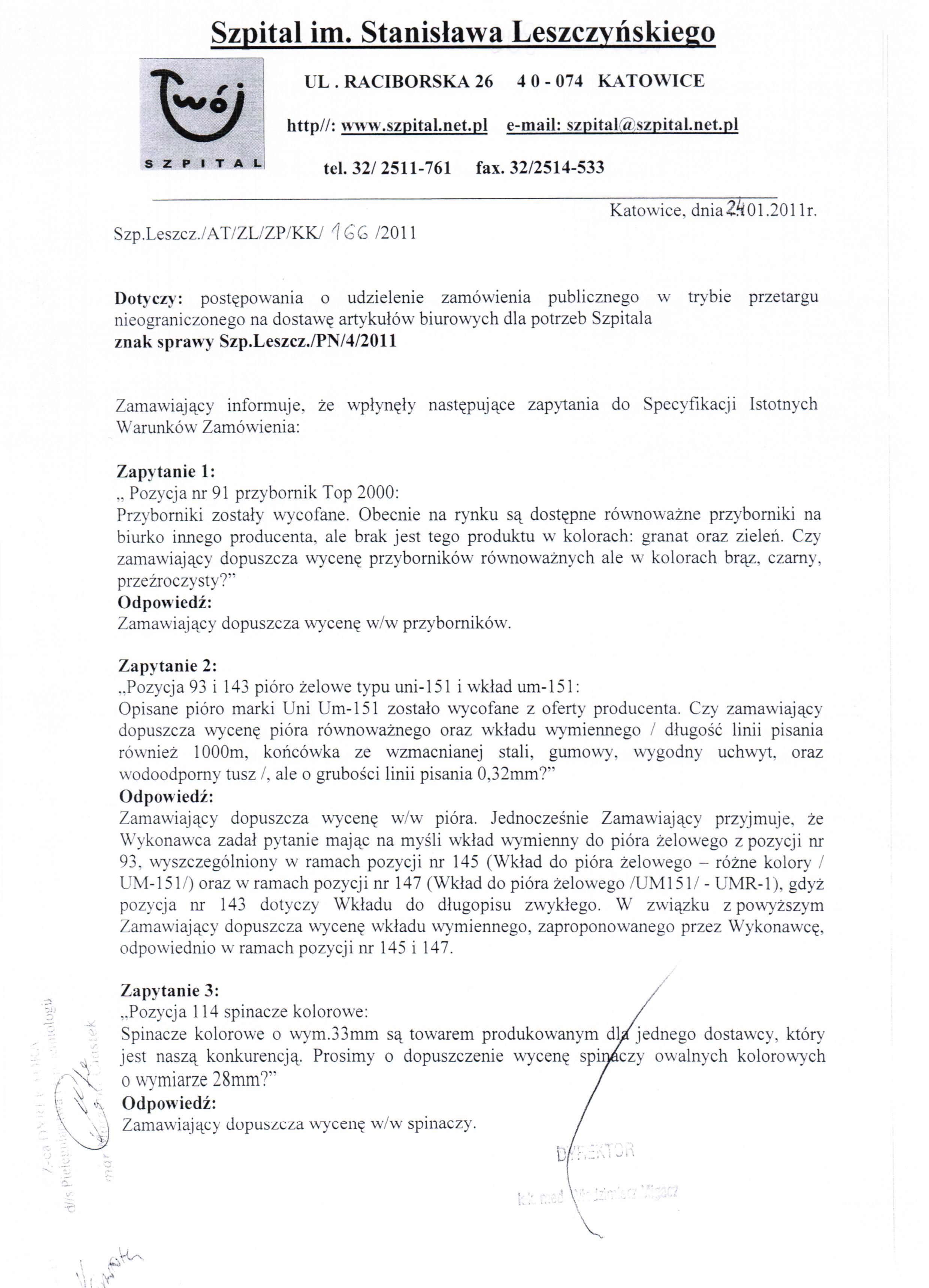 Ogłoszenie wyników postępowania - 24.III.2011r. / Zapytania do SIWZ (24.01.2011)