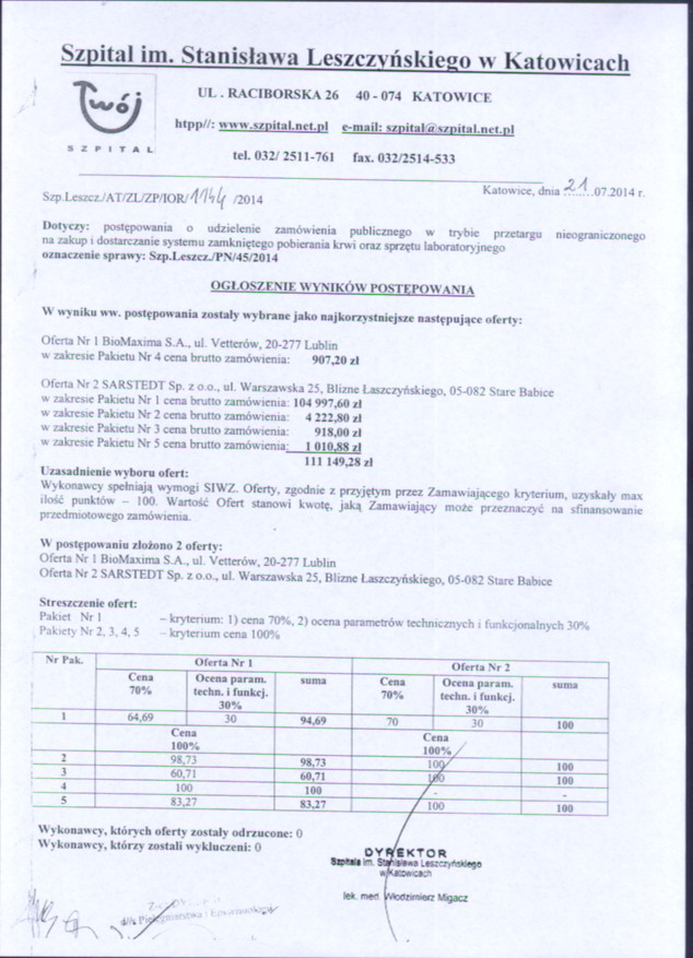 oznaczenie sprawy: Szp.Leszcz /PN/ 45 /2014