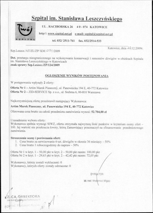 do dnia 17.12.2009r. do godz. 11.00 w Szpitalu im. Stanisława Leszczyńskiego w Katowicach przy ul. Raciborskiej 26 w Kancelarii Dyrektora.