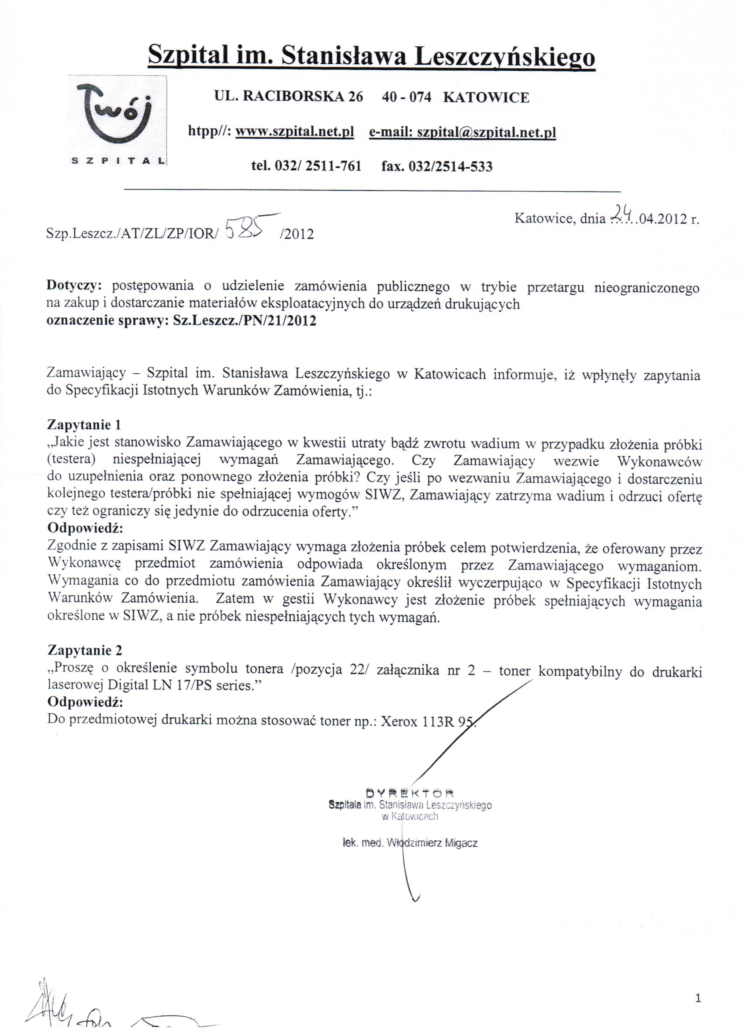 oznaczenie sprawy: Szp.Leszcz /PN/ 21 /2012