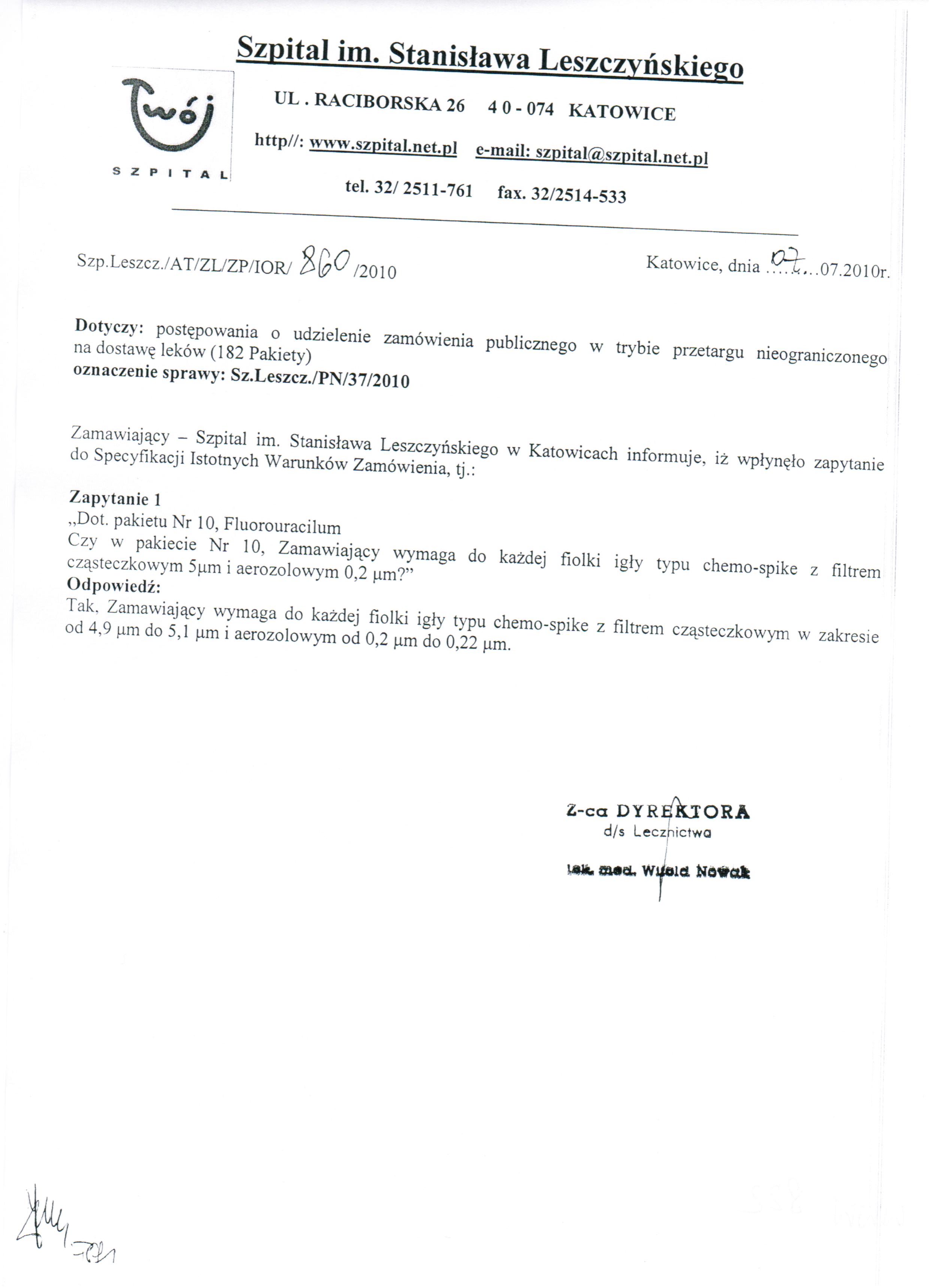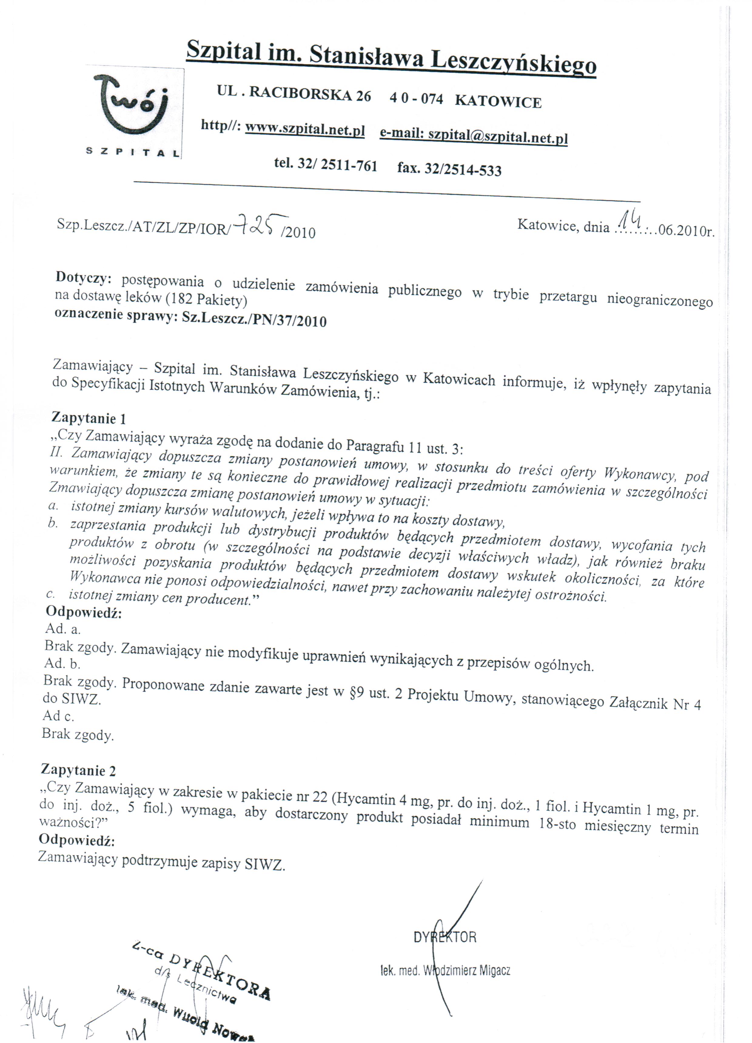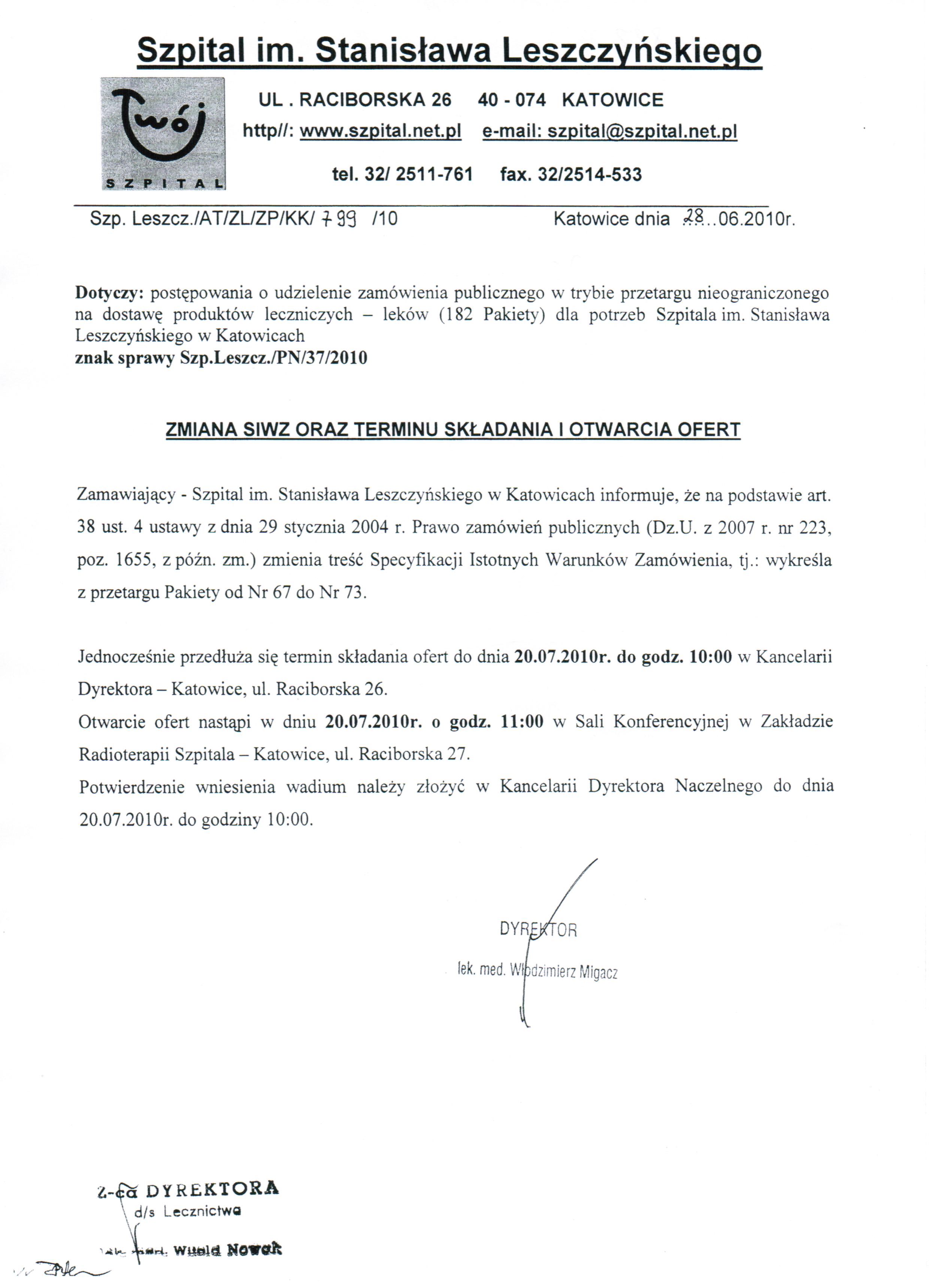 do dnia 30.06.2010r. do godz. 10:00 w Kancelarii Dyrektora Szpitala w Katowicach przy ul. Raciborskiej 26.