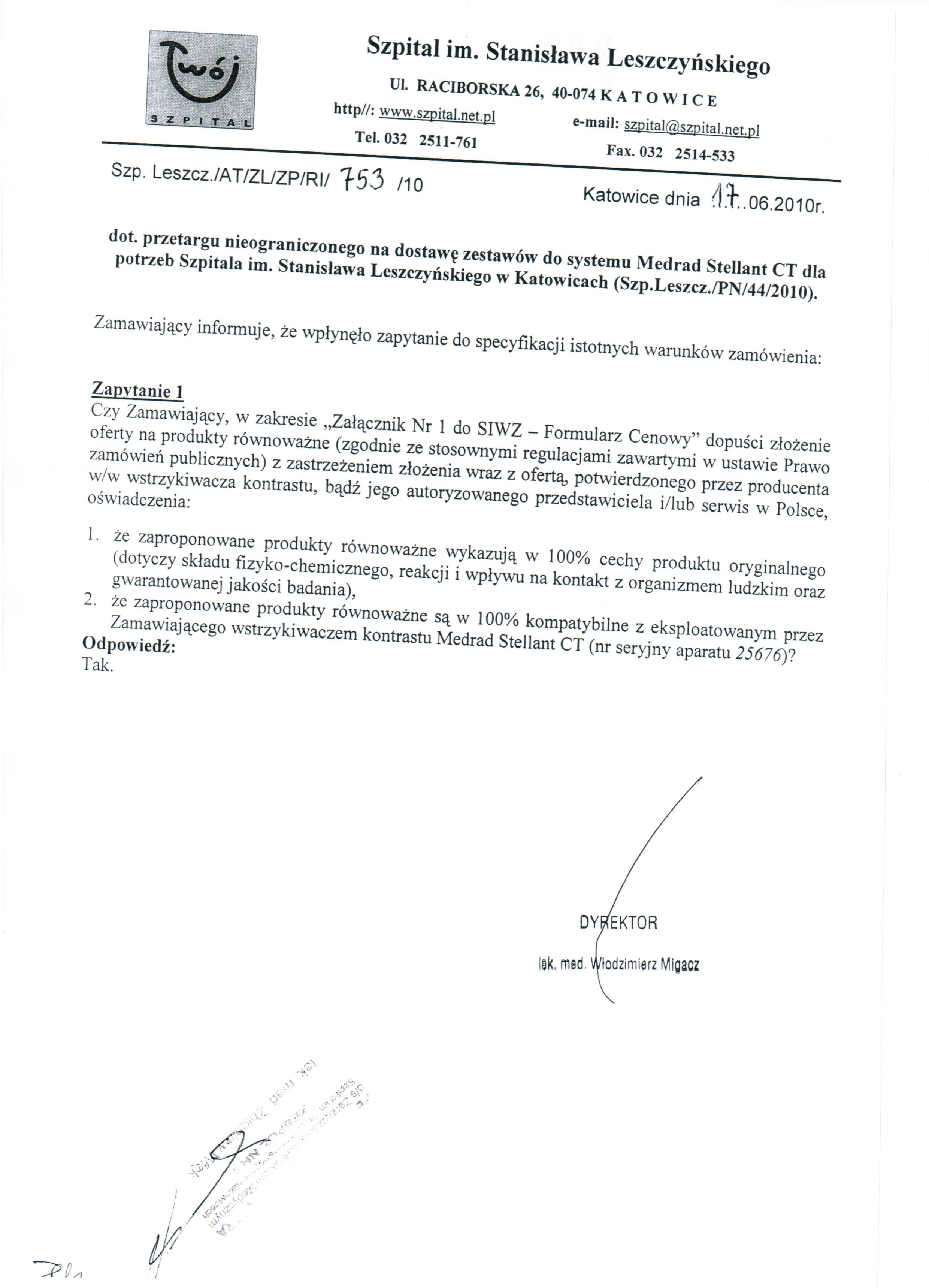 SIWZ można uzyskać pod adresem: Szpital im. Stanisława Leszczyńskiego, 40-074 Katowice,