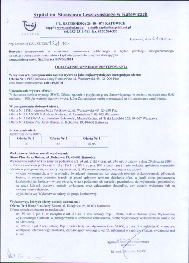 07.08.2014r. do godz. 10:00 w 40-074 Katowice,