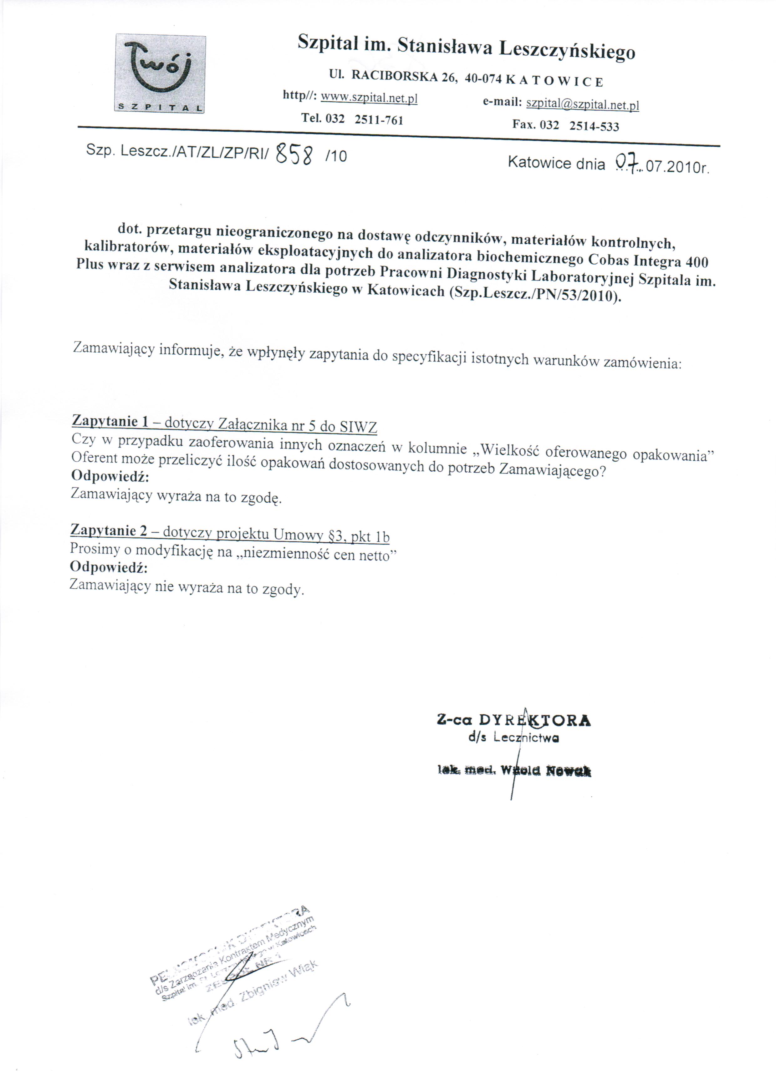 SIWZ można uzyskać pod adresem: Szpital im. Stanisława Leszczyńskiego, 40-074 Katowice,