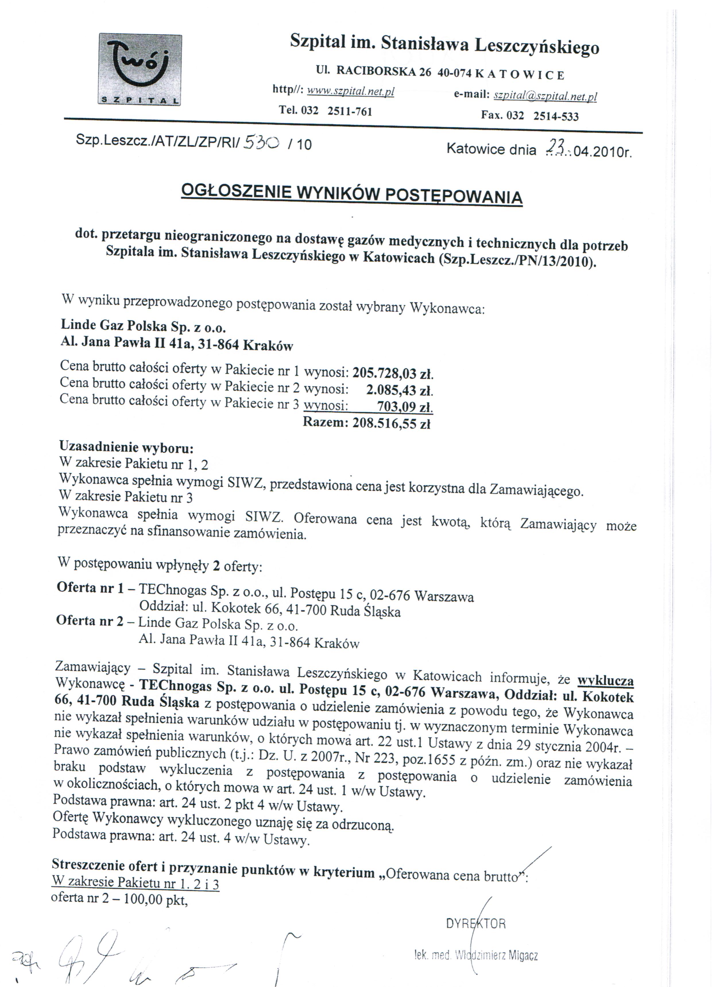 Ogłoszenie wyników postępowania - 23.04.2010r.