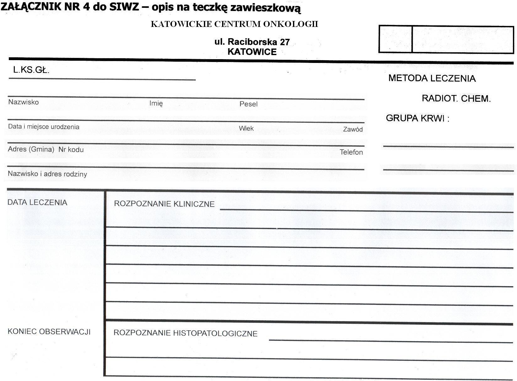 Pakiet Nr 4 – teczki zawieszkowe z nadrukiem wg indywidualnego wzoru - Wzór opisu na teczkę określa Załącznik Nr 4 do SIWZ.
