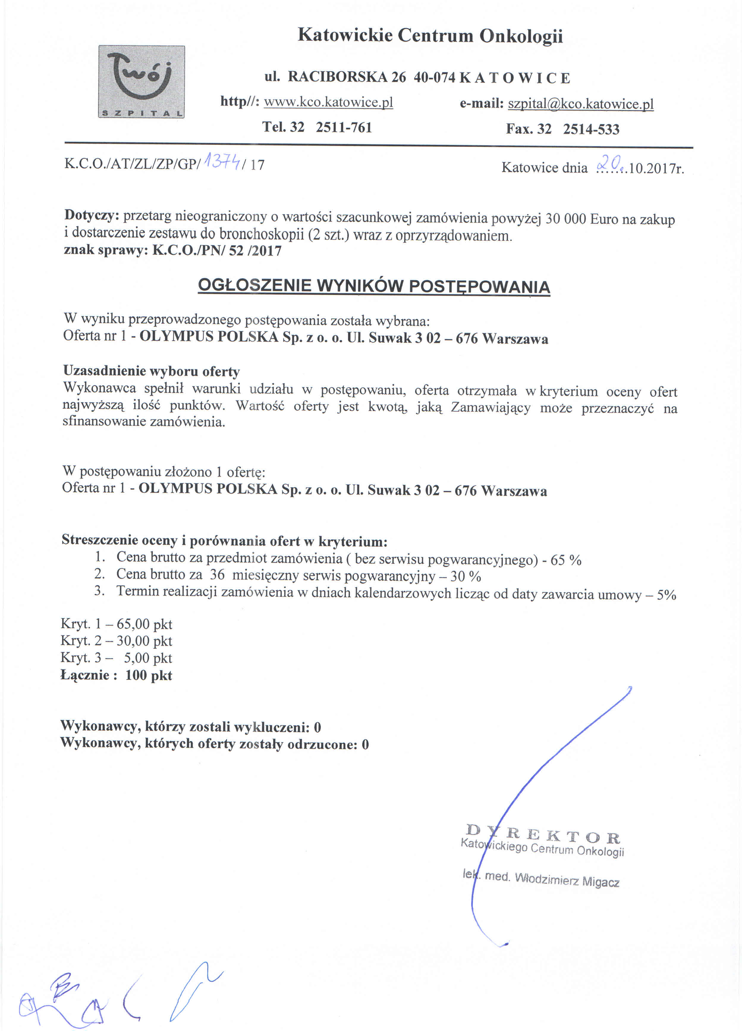 SIWZ można uzyskać pod adresem: Katowickie Centrum Onkologii, 40-074 Katowice,