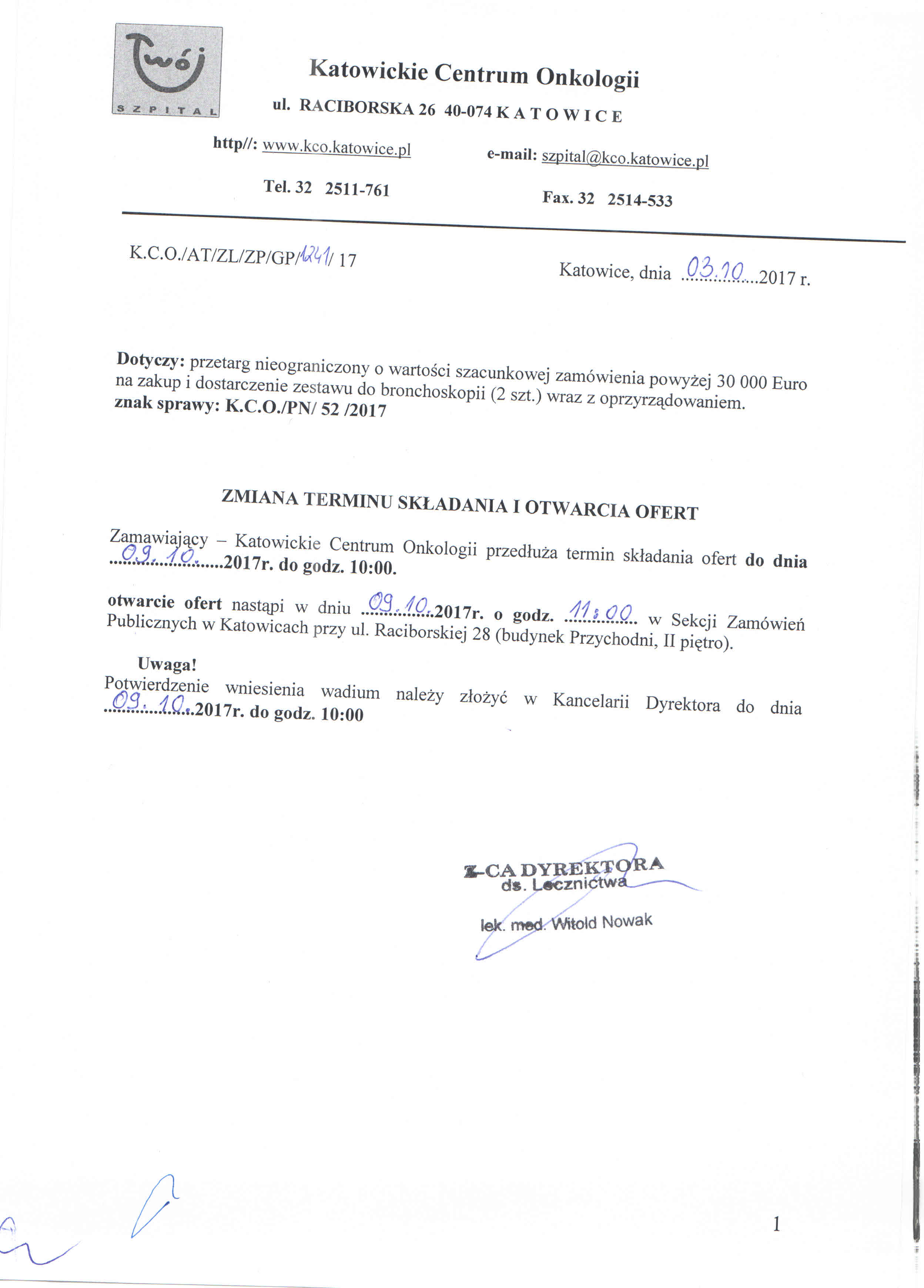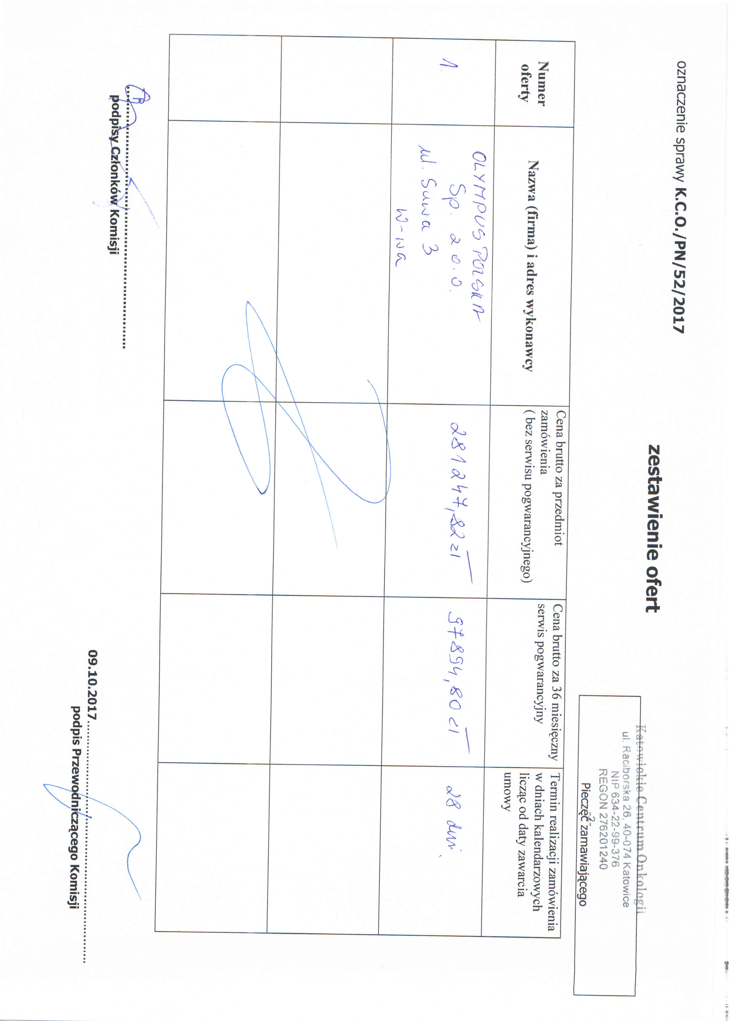 w dniu 04.10.2017r. o godz. 11:30, w 40-074 Katowice, ul. Raciborska 28 (budynek Przychodni, II piętro, Sekcja Zamówień Publicznych)