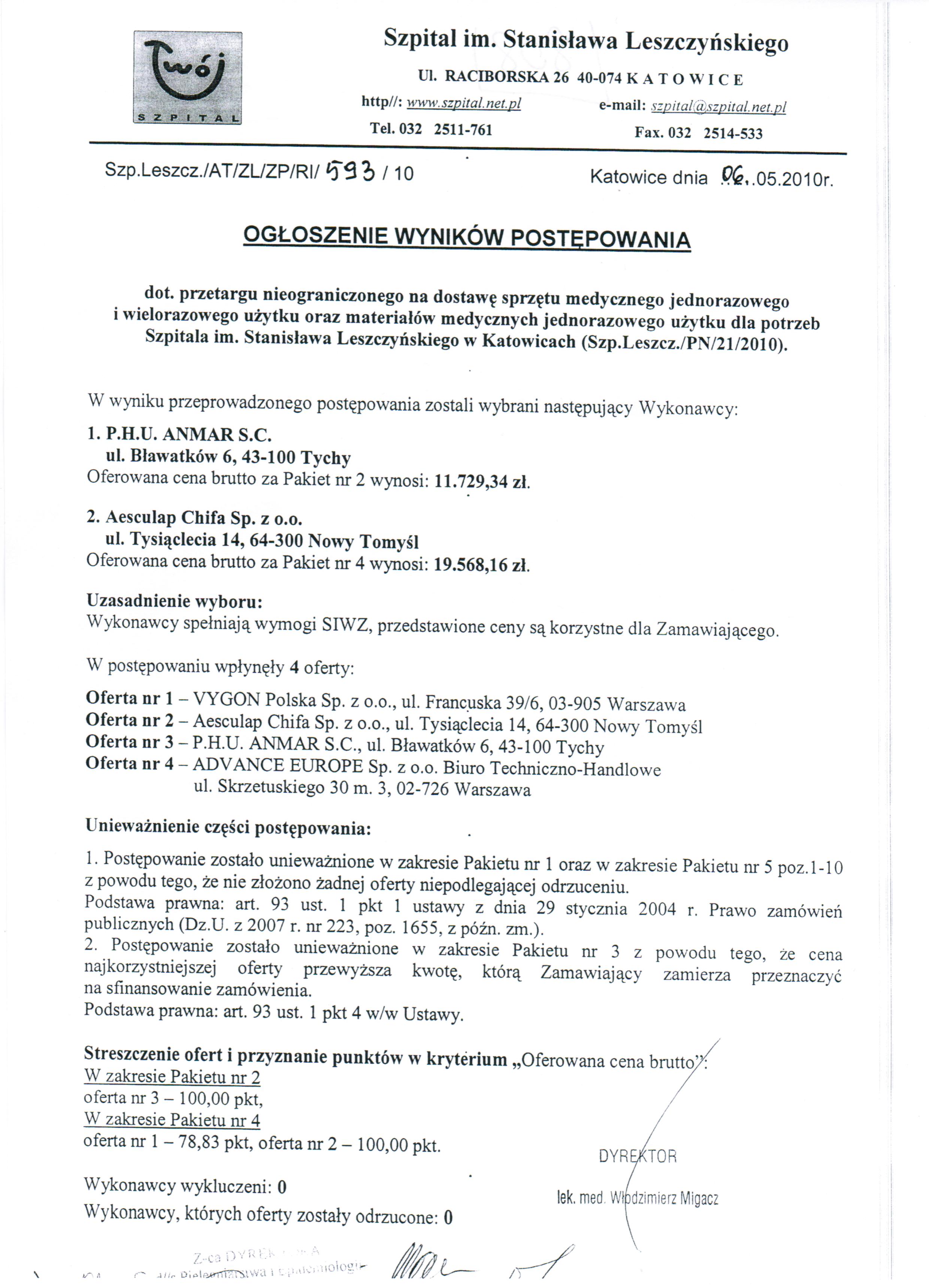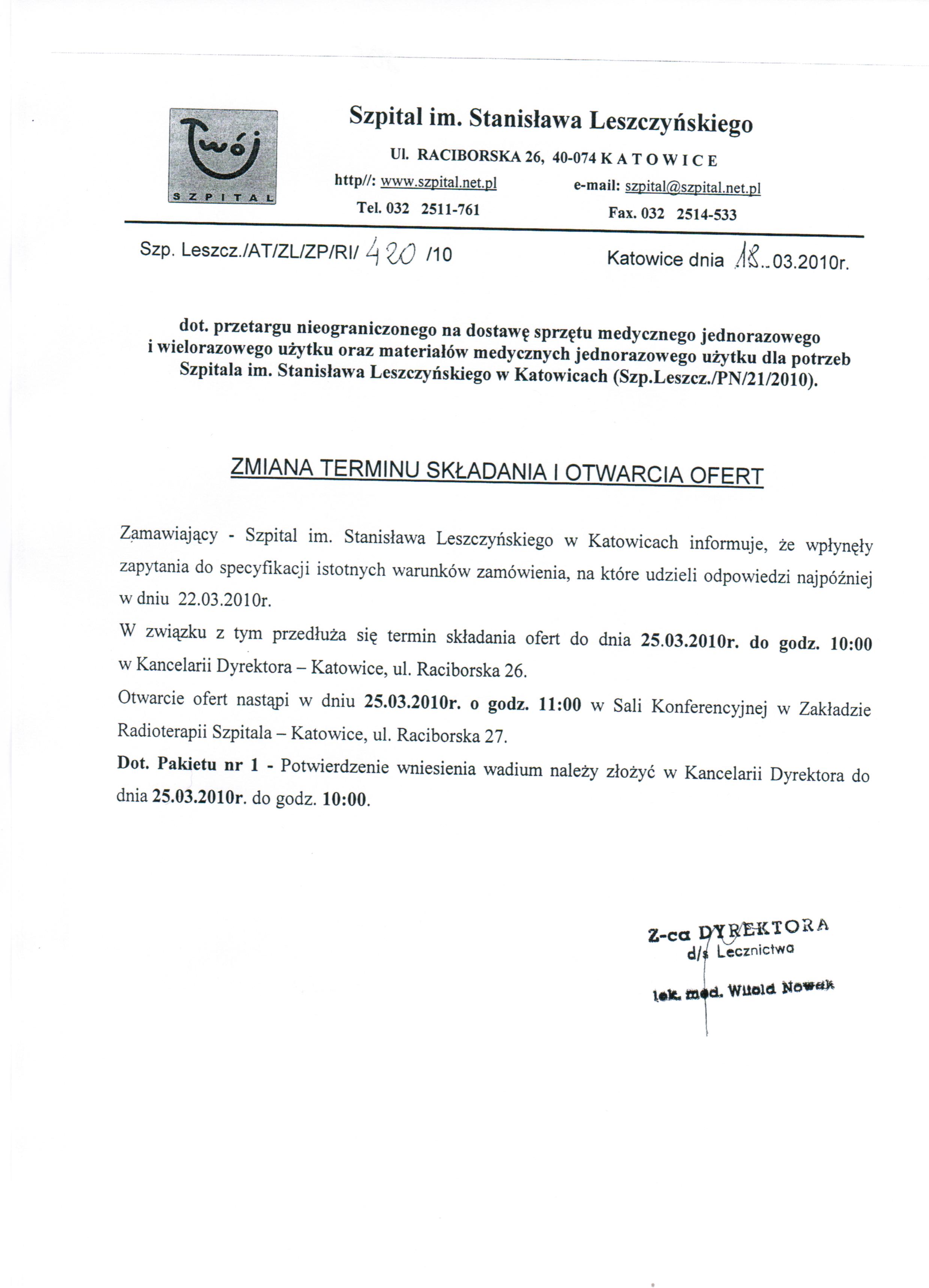 do dnia 19.03.2010r. do godz. 10.00 w Kancelarii Dyrektora Szpitala