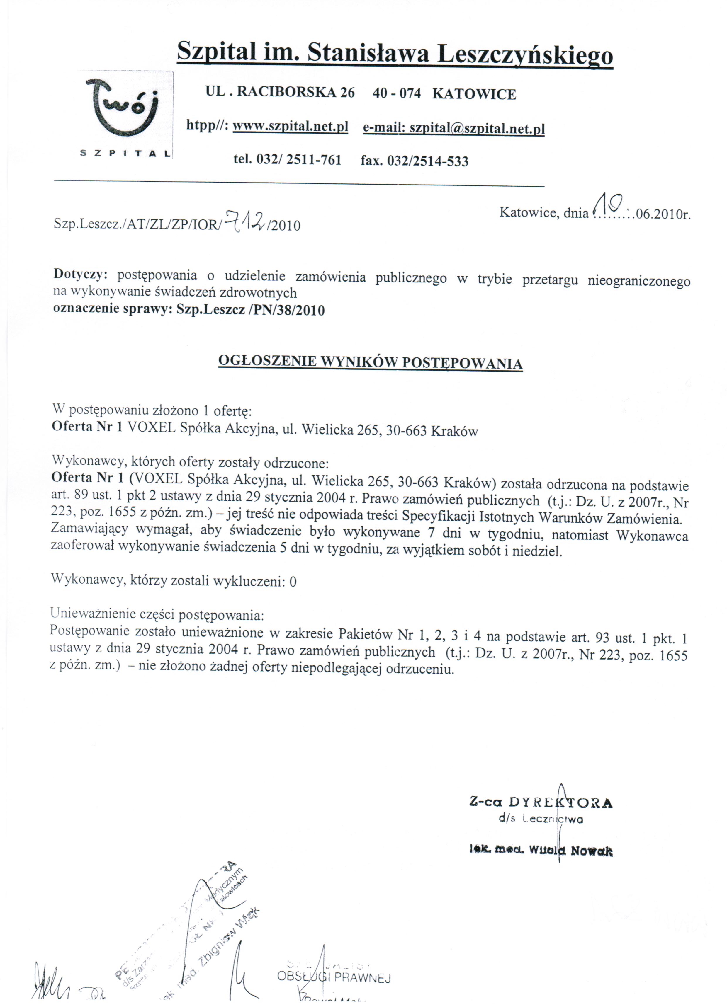 do dnia 31.05.2010r. do godz. 10:00 w Kancelarii Dyrektora Szpitala w Katowicach przy ul. Raciborskiej 26.
