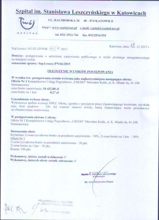 w dniu 03.12.2015r. o godz. 11:00 w 40-074 Katowice, ulica Raciborska 28, budynek Przychodni, II piętro, Sekcja Zamówień Publicznych.