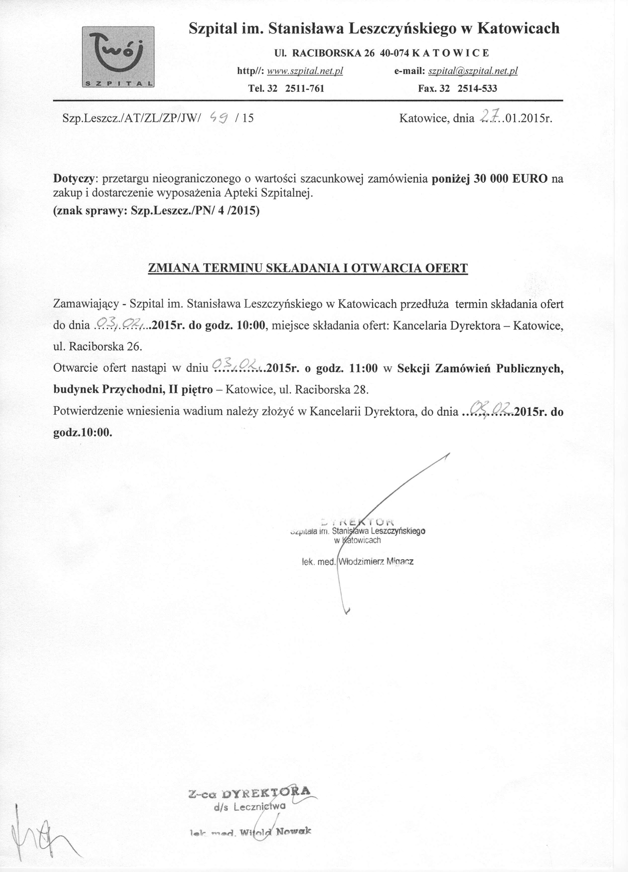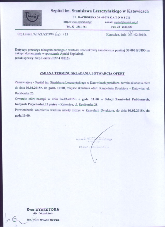 w dniu 29.01.2015r. o godz. 11:00 w 40-074 Katowice, ulica Raciborska 28, budynek Przychodni, II piętro, Sekcja Zamówień Publicznych.
