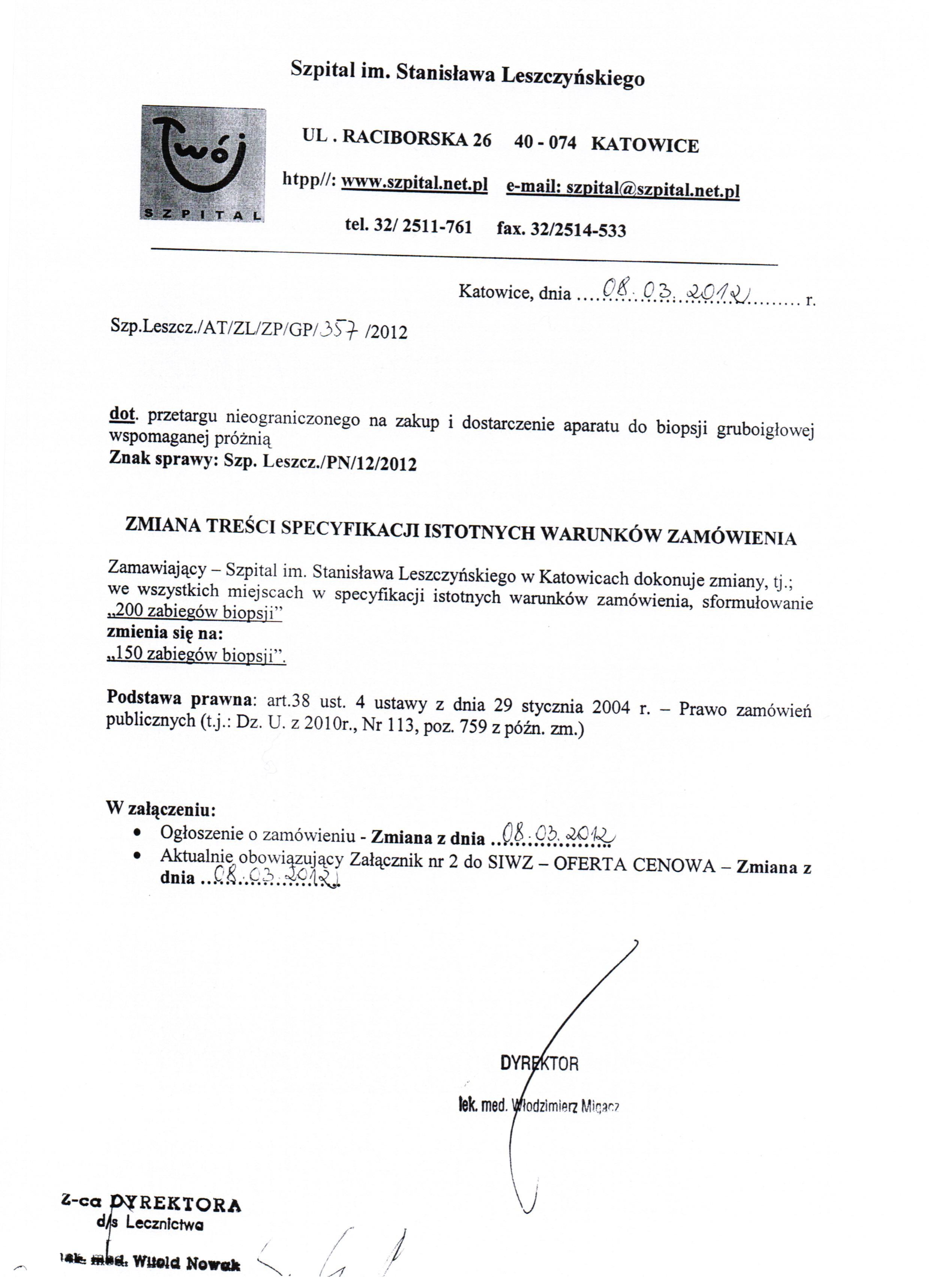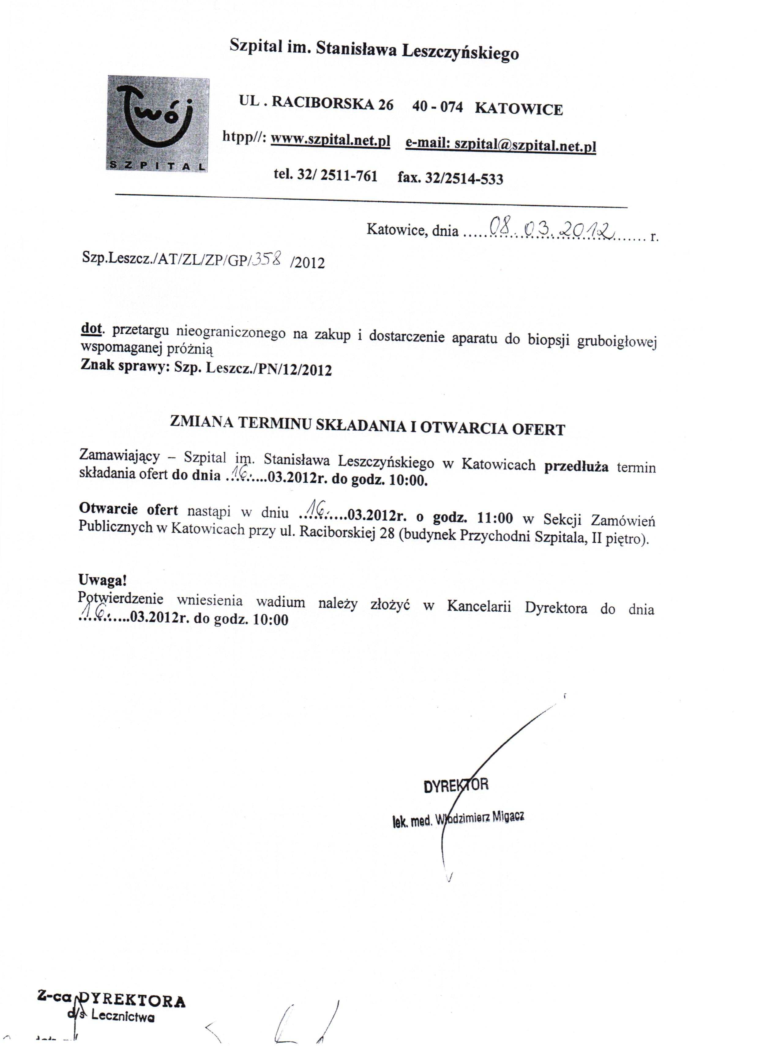 dot. zakupu i dostarczenia aparatu do biopsji grubiogłowej wspomaganej próżnią w ilości 1 szt.