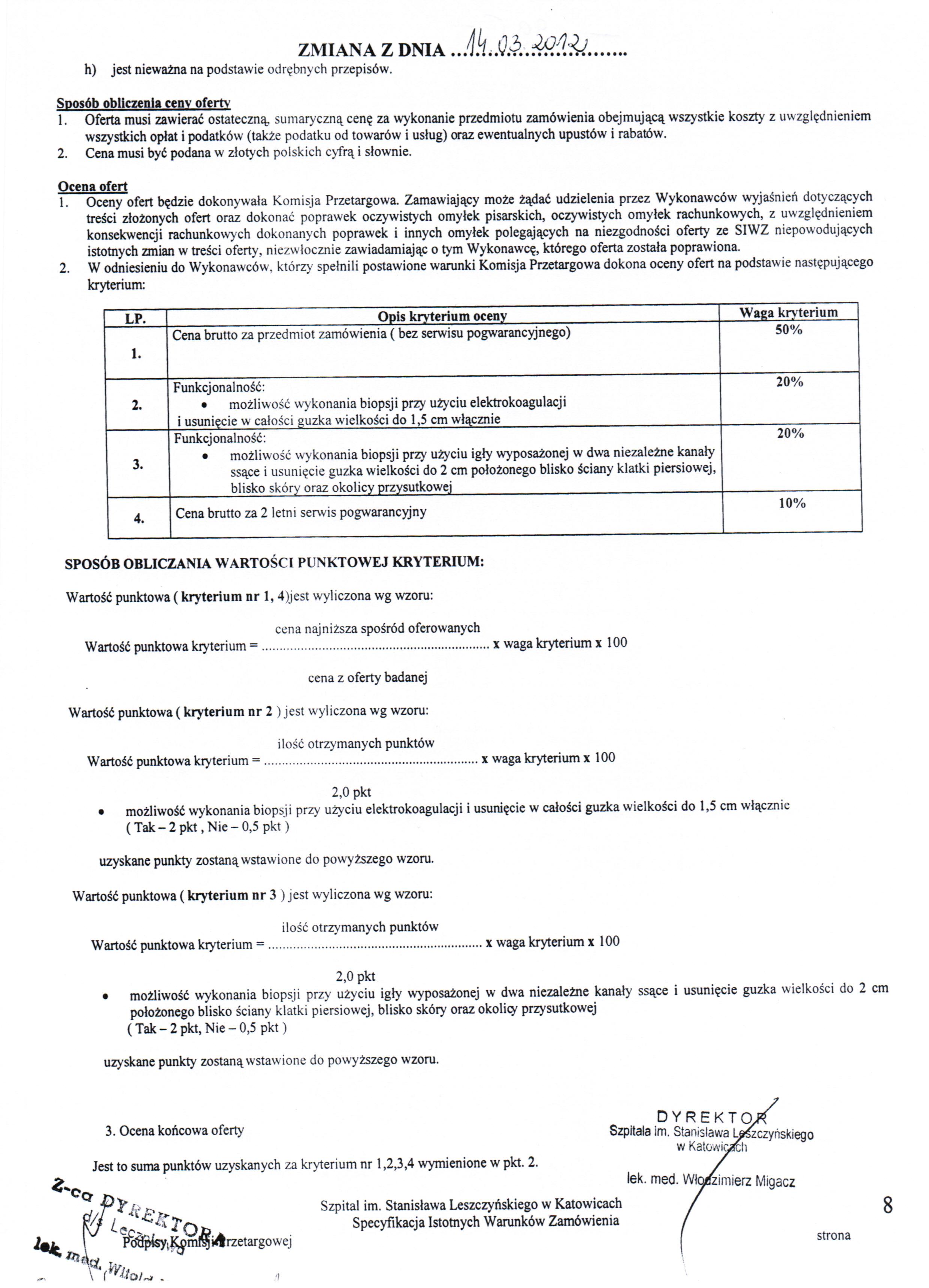 dot. sukcesywnego dostarczania sprzętu medycznego jednorazowego użytku i akcesoriów niezbędnych do wykonania 200 zabiegów biopsji: