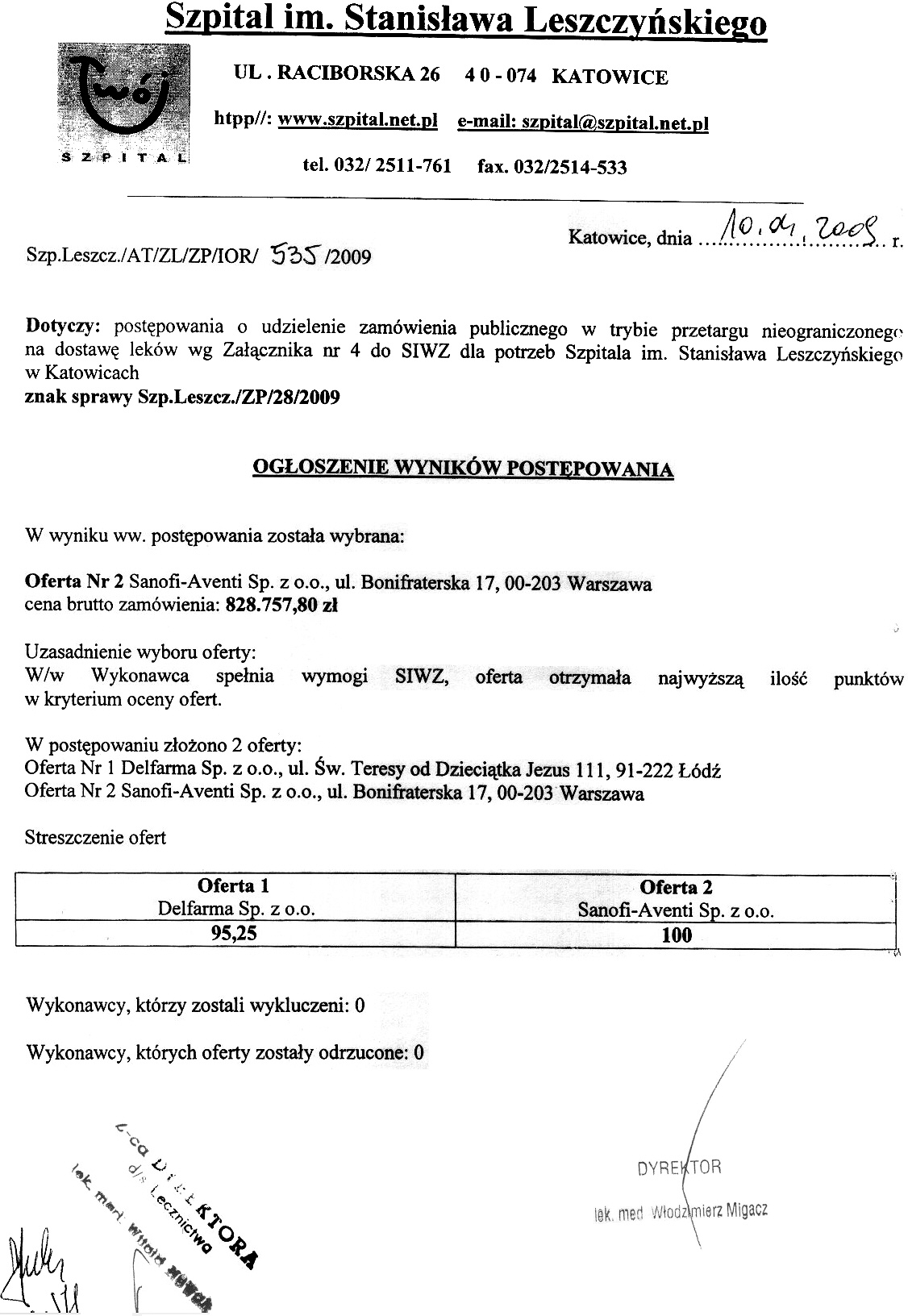 do dnia 07.04.2009r. do godz. 11.00 w Kancelarii Dyrektora Szpitala, w Katowicach, przy ul. Raciborskiej 26.