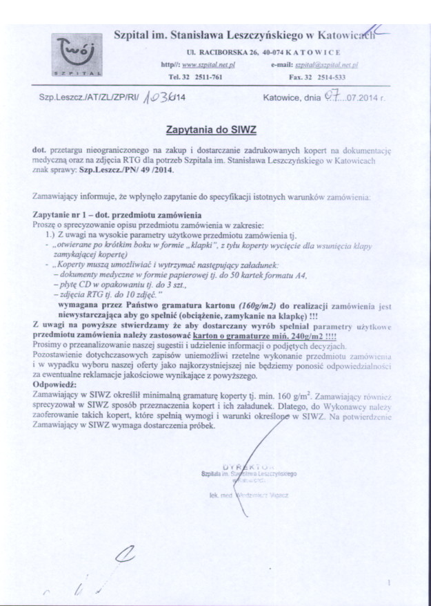 SIWZ można uzyskać pod adresem: Szpital im. Stanisława Leszczyńskiego w Katowicach, 40-074 Katowice, ul. Raciborska 26 – Dział Księgowości.