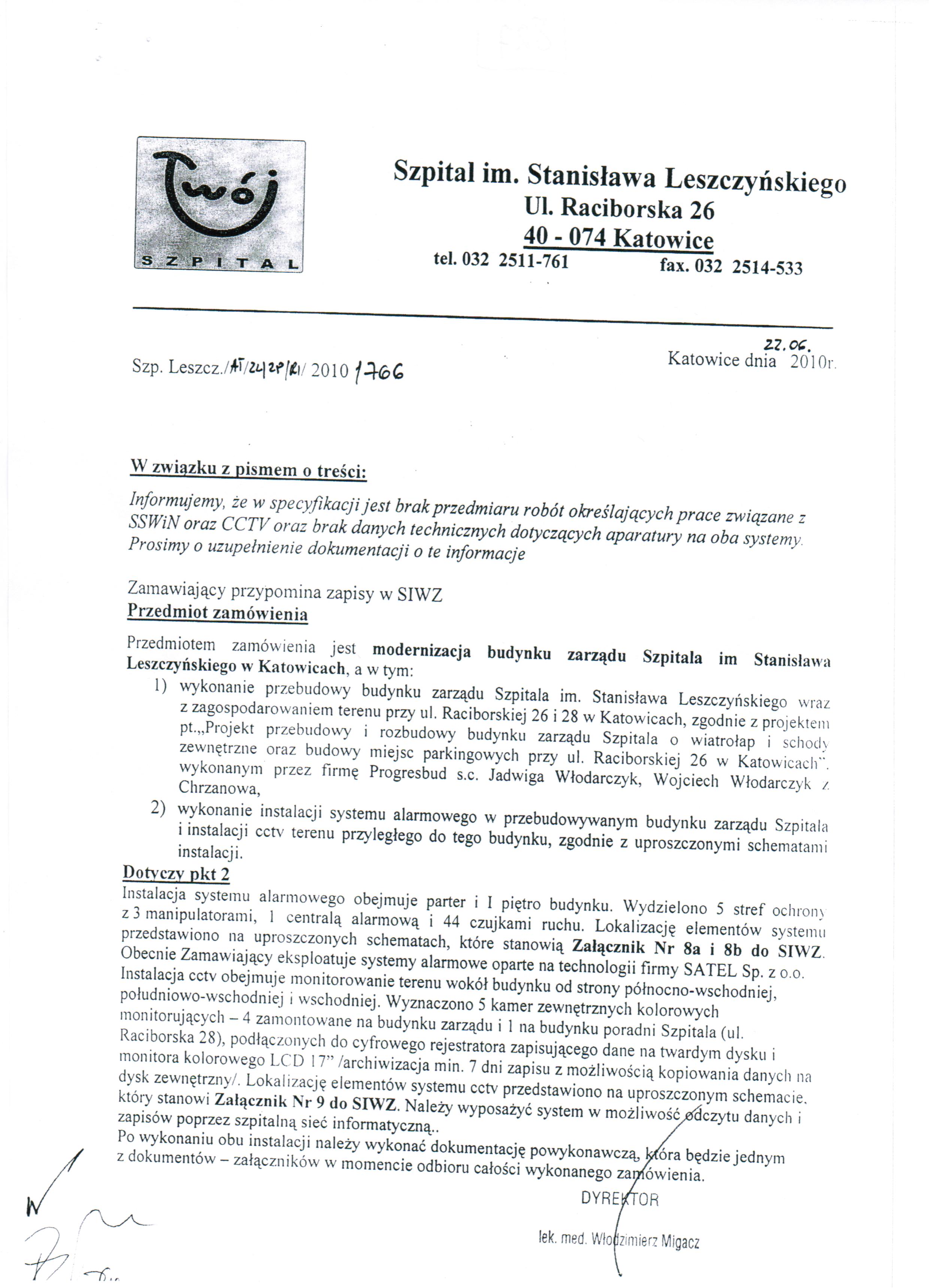 SIWZ można uzyskać pod adresem: Szpital im. Stanisława Leszczyńskiego, 40-074 Katowice,