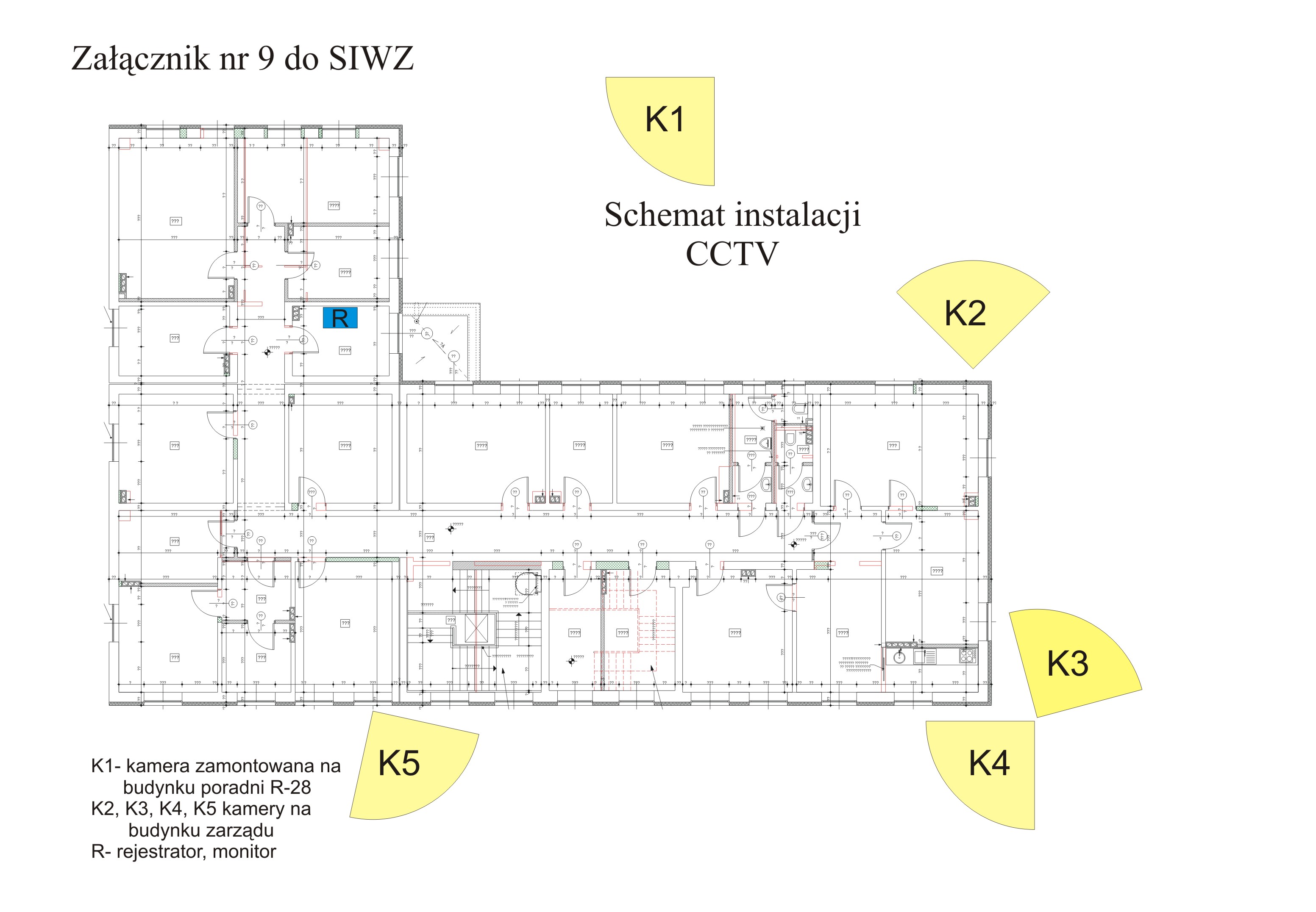 2. wykonanie instalacji systemu alarmowego w przebudowywanym budynku zarządu Szpitala i instalacji cctv terenu przyległego do tego budynku, zgodnie z uproszczonymi schematami instalacji.