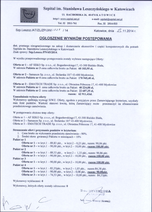 (znak sprawy: Szp.Leszcz./PN/ 65 /2014)