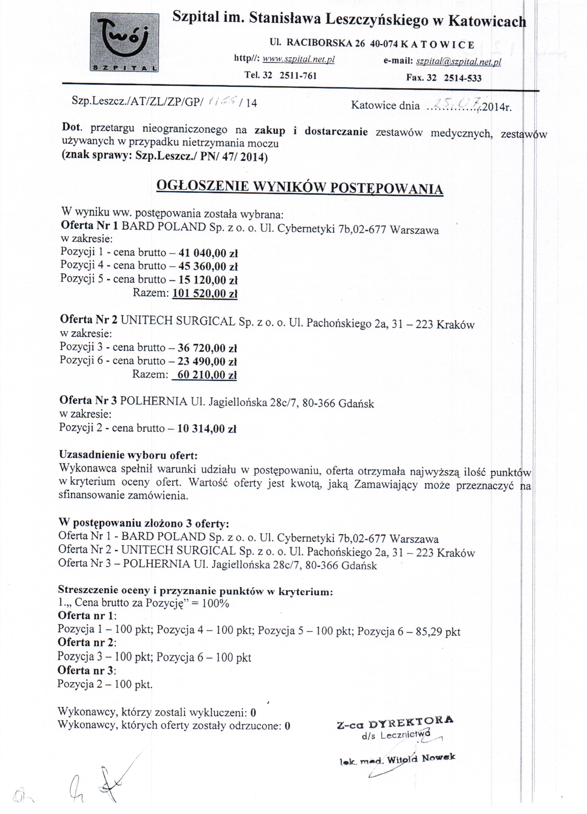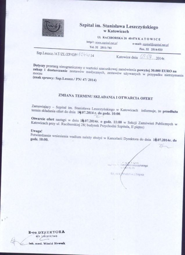 do dnia 10.07.2014r. do godz. 10:00 w Kancelarii Dyrektora Szpitala w Katowicach przy ul. Raciborskiej 26 (I piętro).