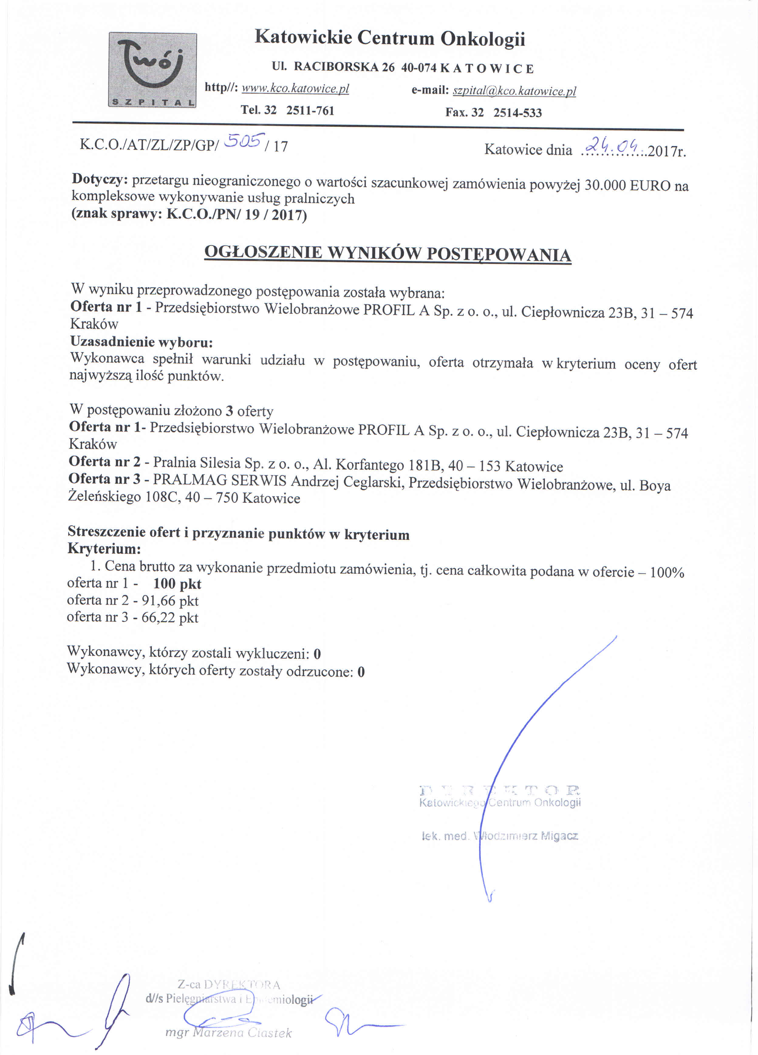 SIWZ można uzyskać pod adresem: Katowickie Centrum Onkologii, 40-074 Katowice,