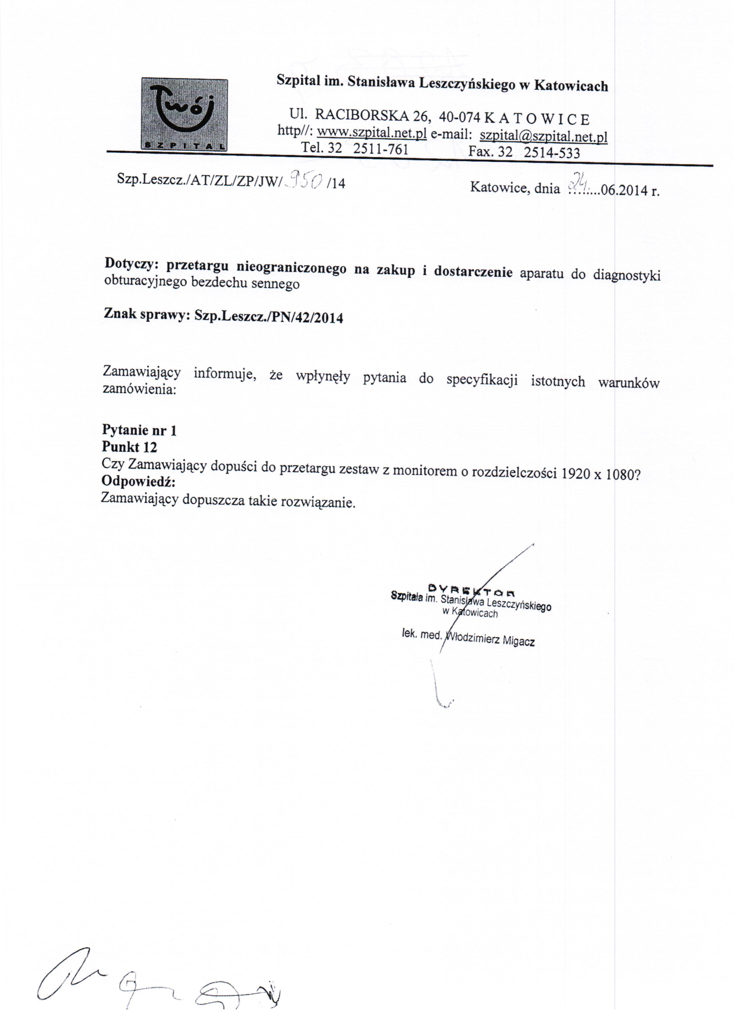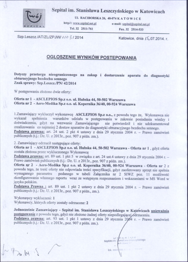 w dniu 26.06.2014r. o godz. 11:00 w 40-074 Katowice, ulica Raciborska 28, budynek Przychodni, II piętro, Sekcja Zamówień Publicznych.