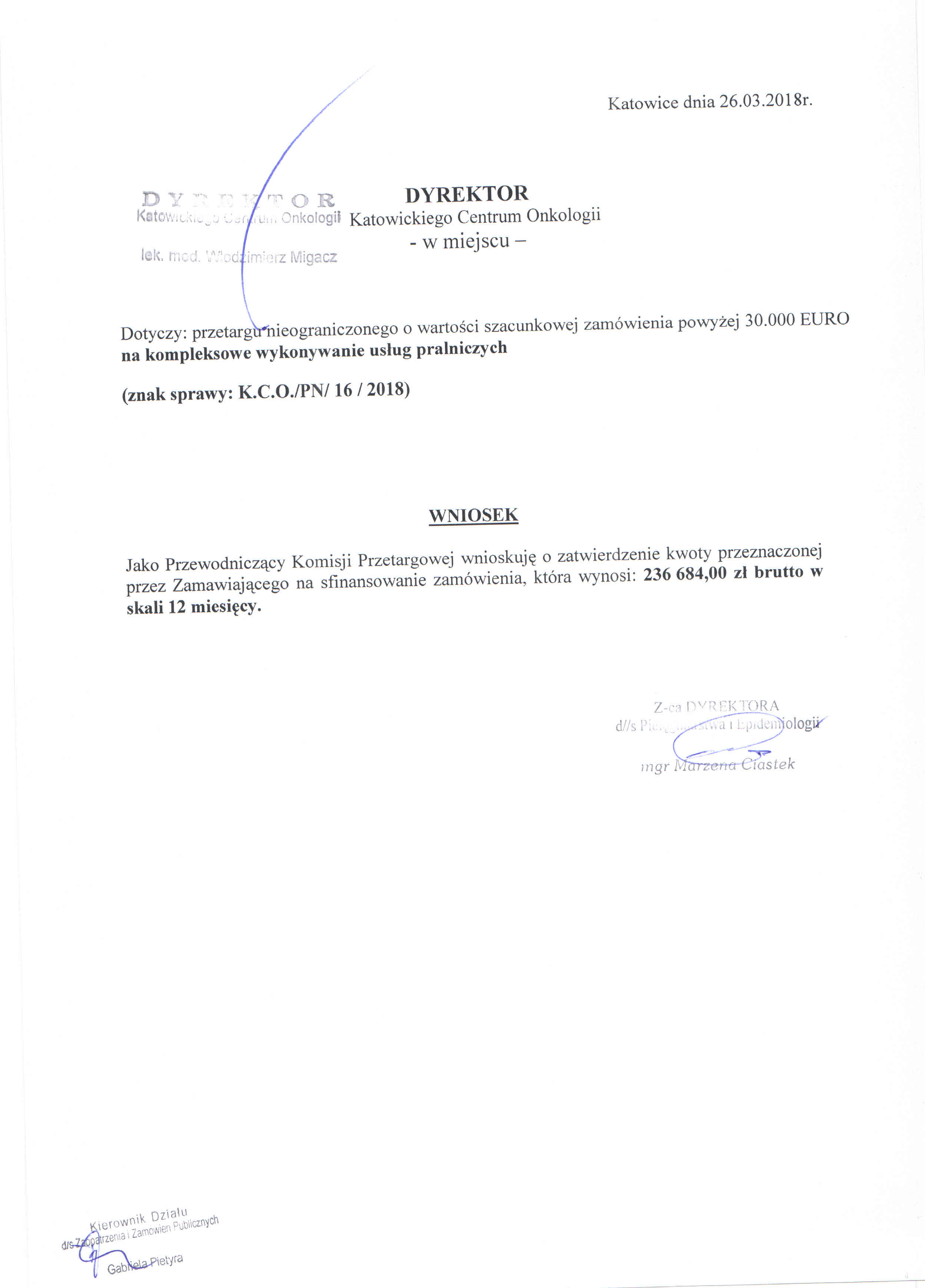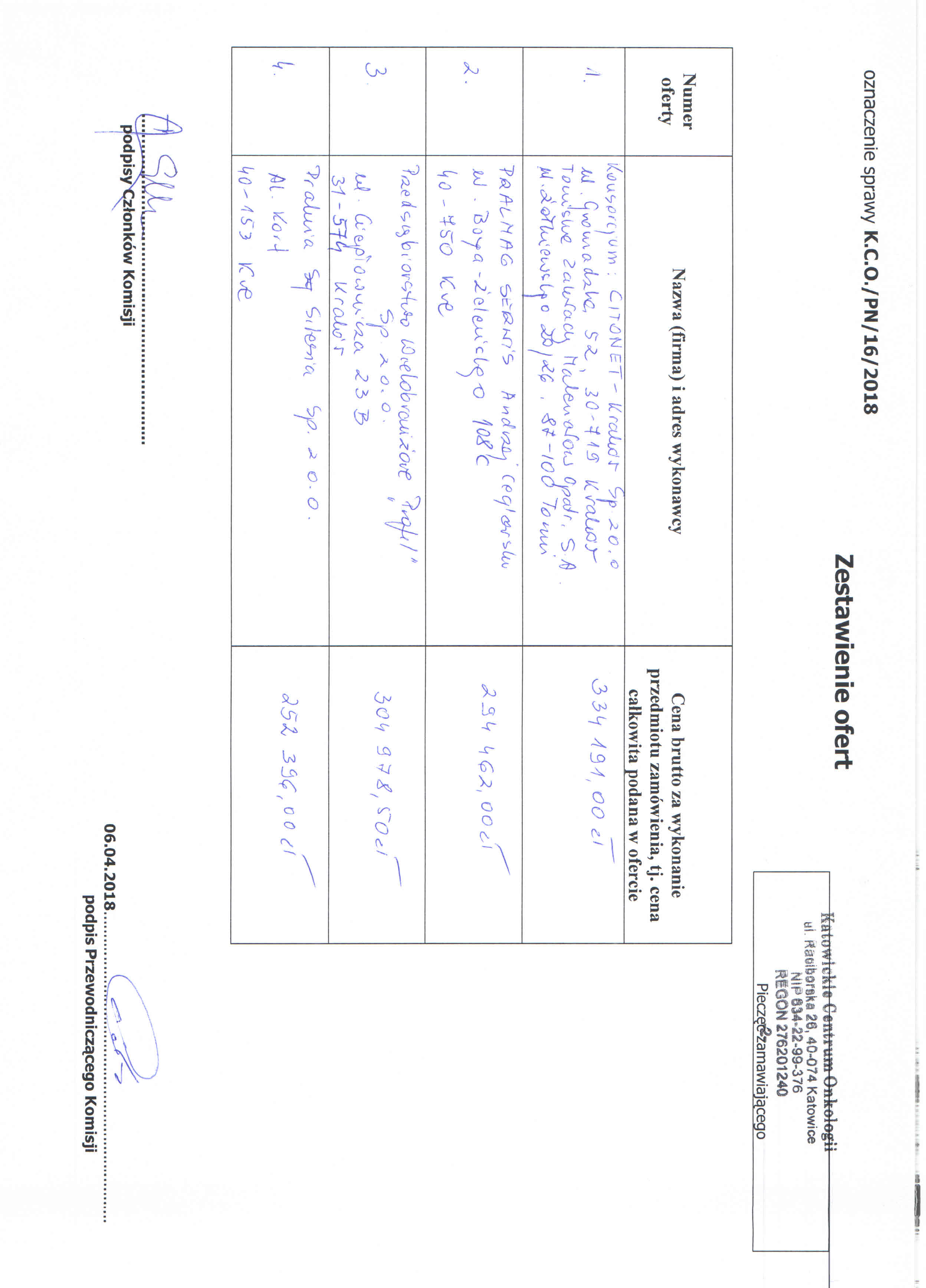 SIWZ można uzyskać pod adresem: Katowickie Centrum Onkologii, 40-074 Katowice, ul. Raciborska 26 – Dział Księgowości.