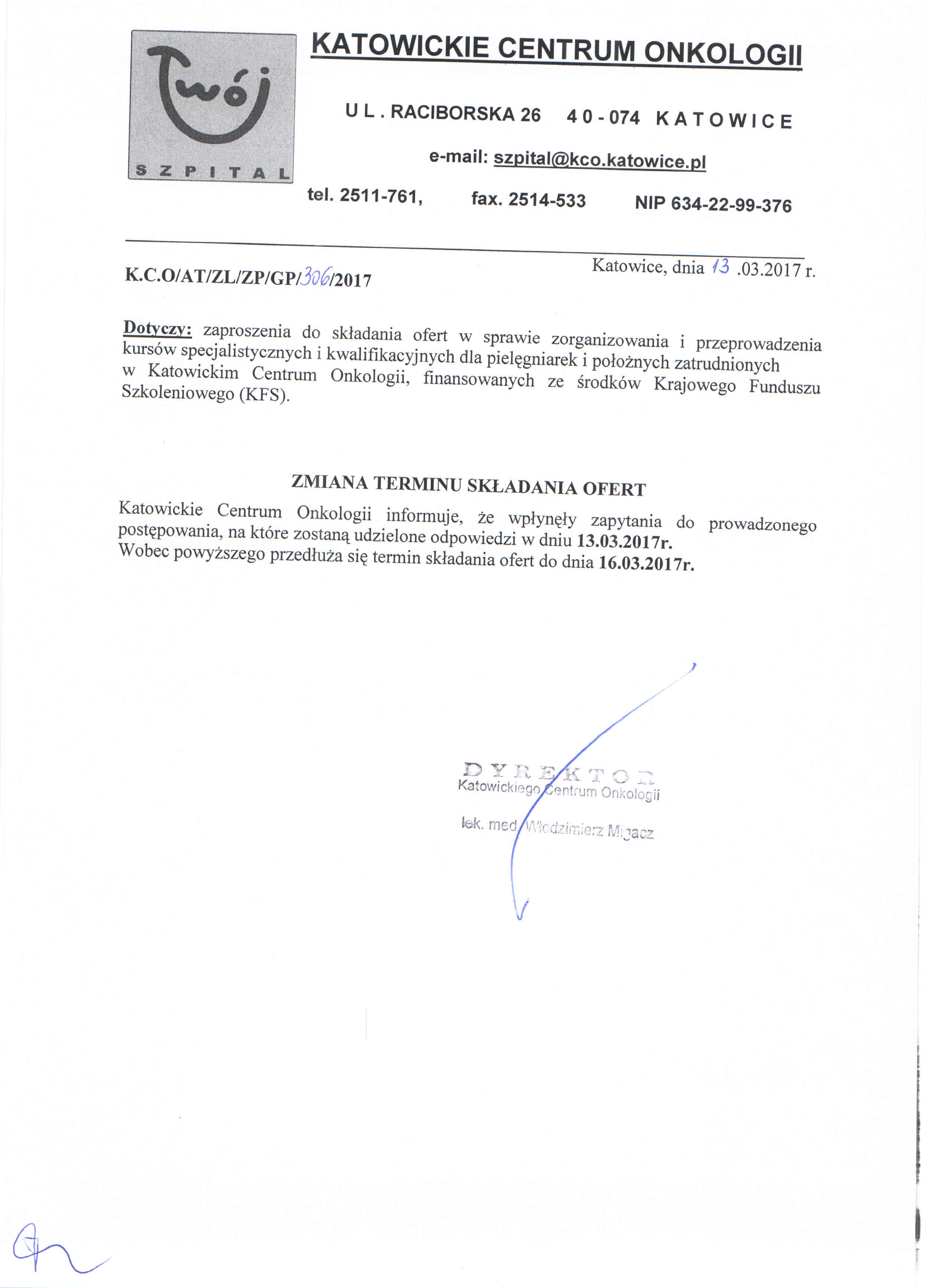 Katowickie Centrum Onkologii zastrzega sobie prawo do odstąpienia od rozstrzygnięcia postępowania bez podania przyczyny.