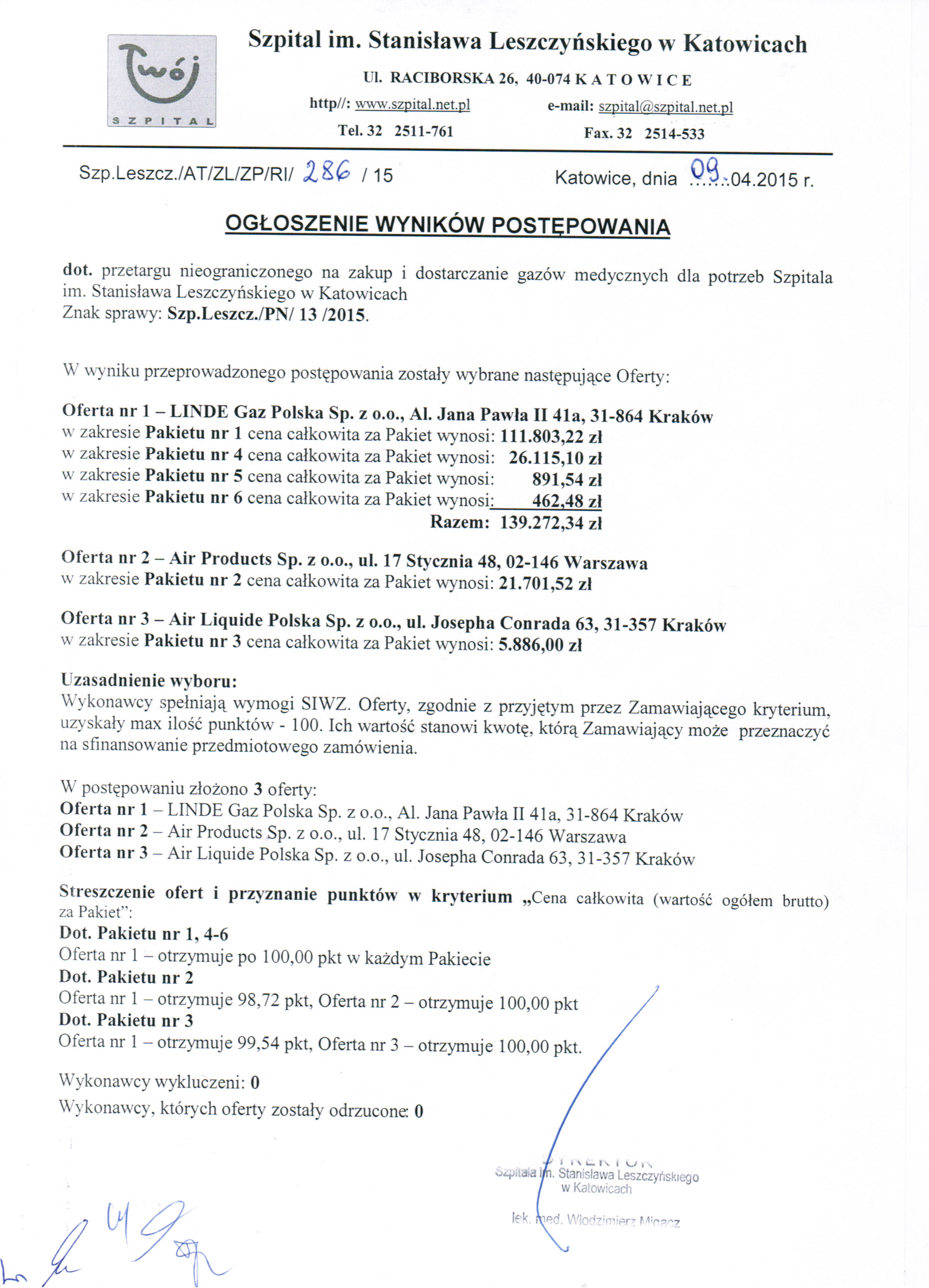 (znak sprawy: Szp.Leszcz./PN/ 13 / 2015)