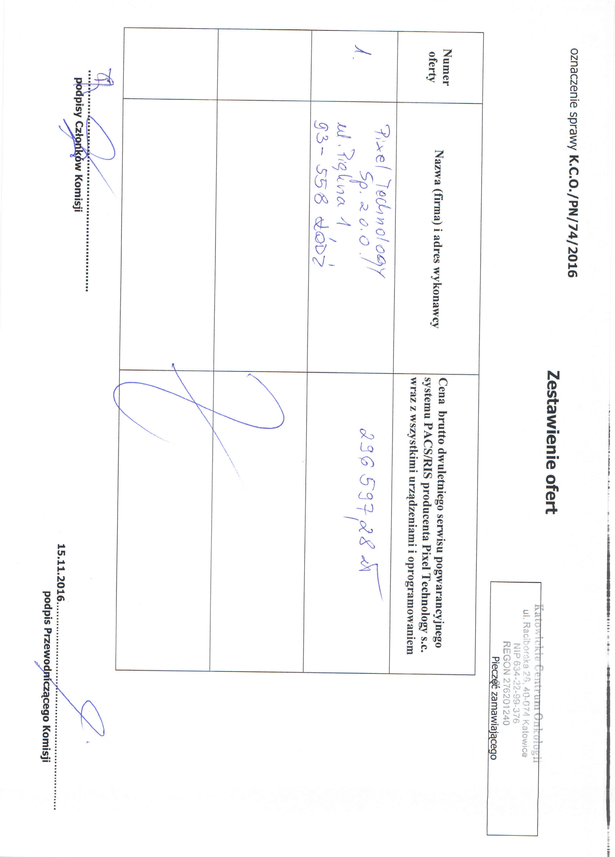 (znak sprawy: K.C.O./PN/ 74 / 2016)