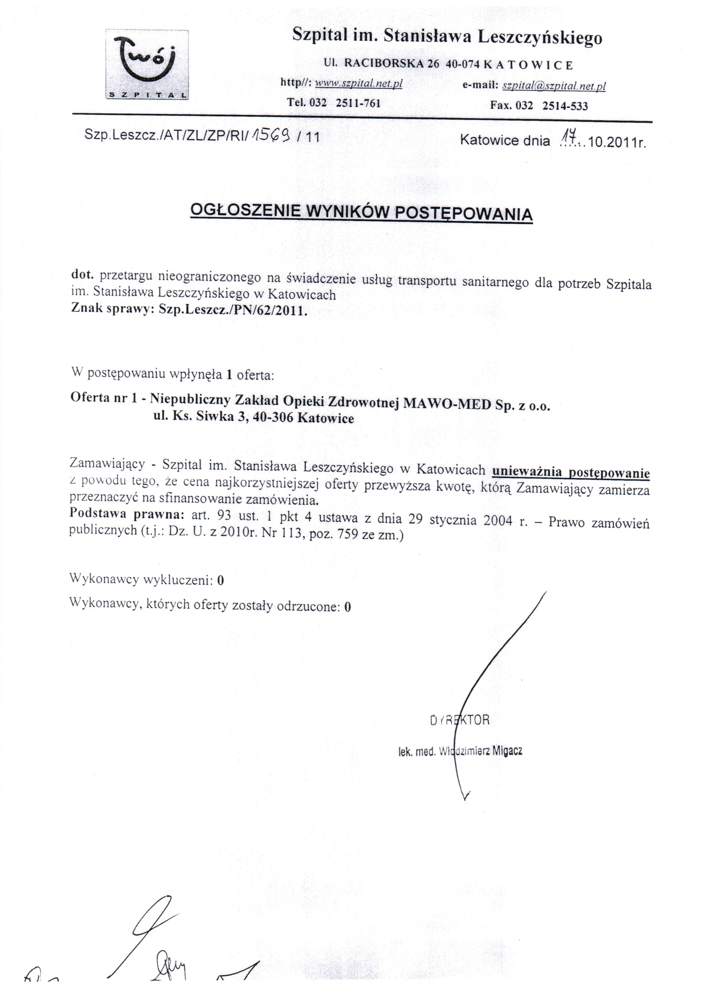 (znak sprawy: Szp.Leszcz./PN/ 62/ 2011)