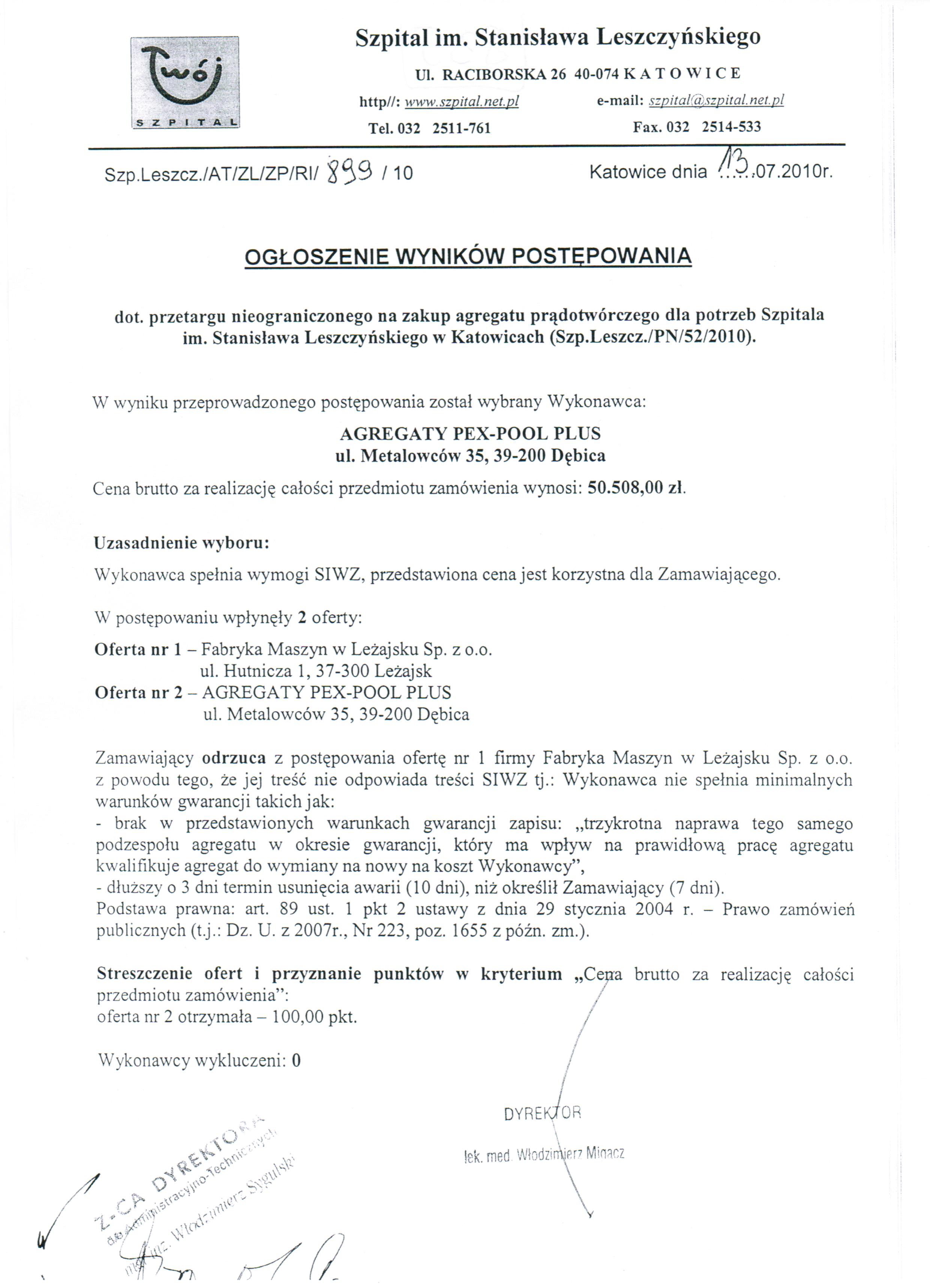 do dnia 08.07.2010r. do godz. 10:00 w Kancelarii Dyrektora Szpitala w Katowicach, przy ul. Raciborskiej 26.