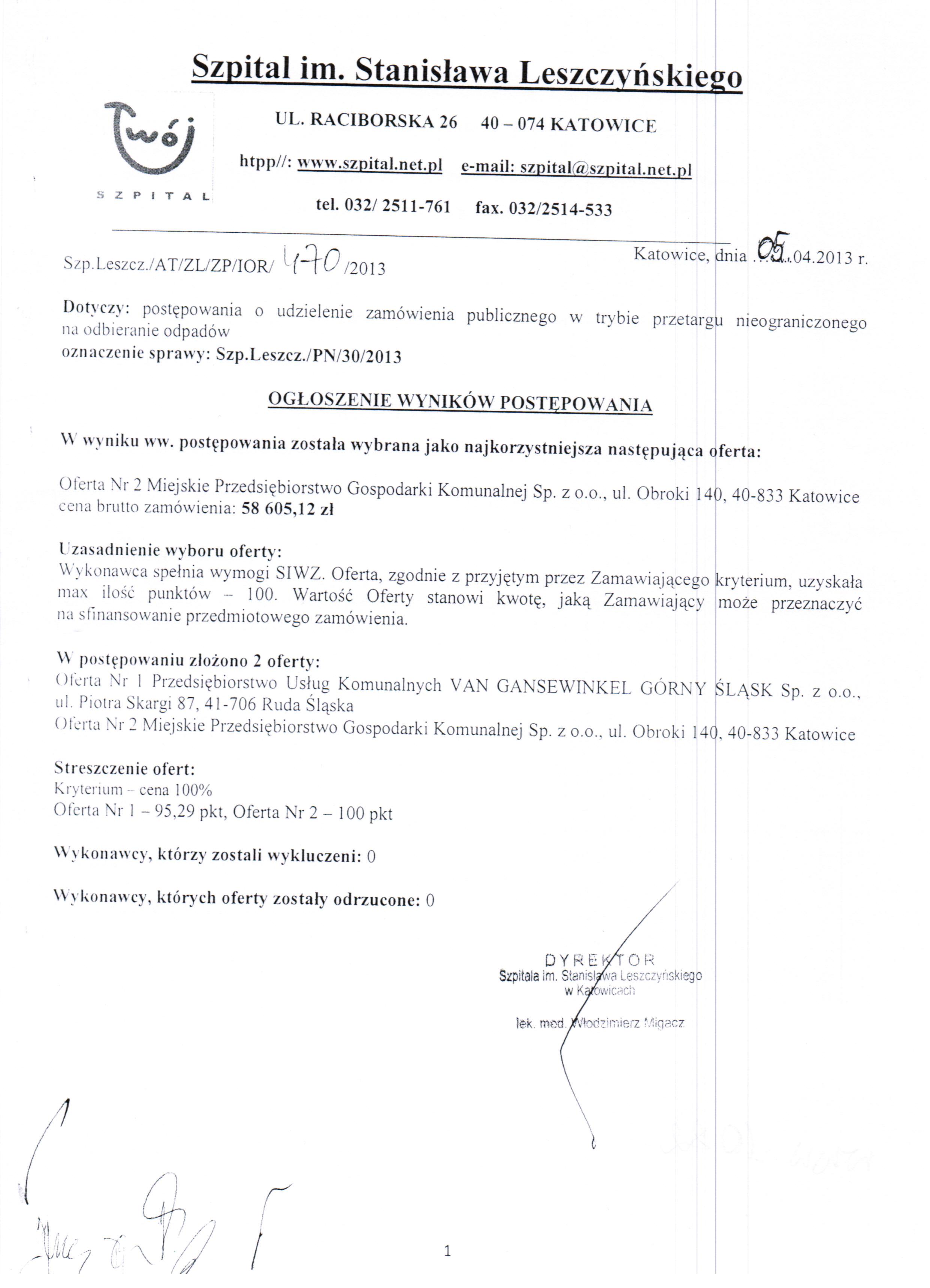 w dniu 27.03.2012r. o godz. 11:00 w 40-074 Katowice, ulica Raciborska 28, budynek Przychodni, II piętro, Sekcja Zamówień Publicznych.