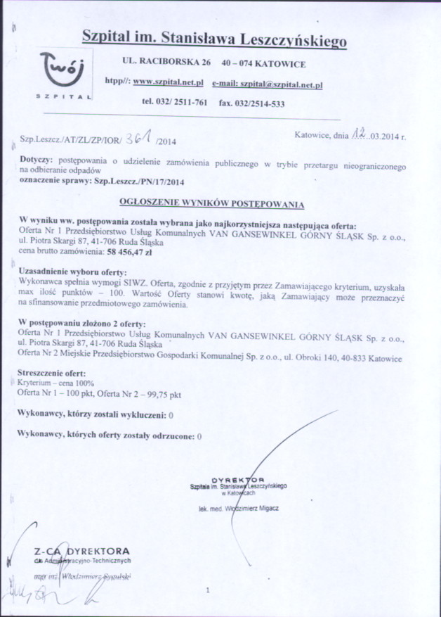 w dniu 27.02.2014 r. o godz. 11:00 w 40-074 Katowice, ulica Raciborska 28, budynek Przychodni, II piętro, Sekcja Zamówień Publicznych.