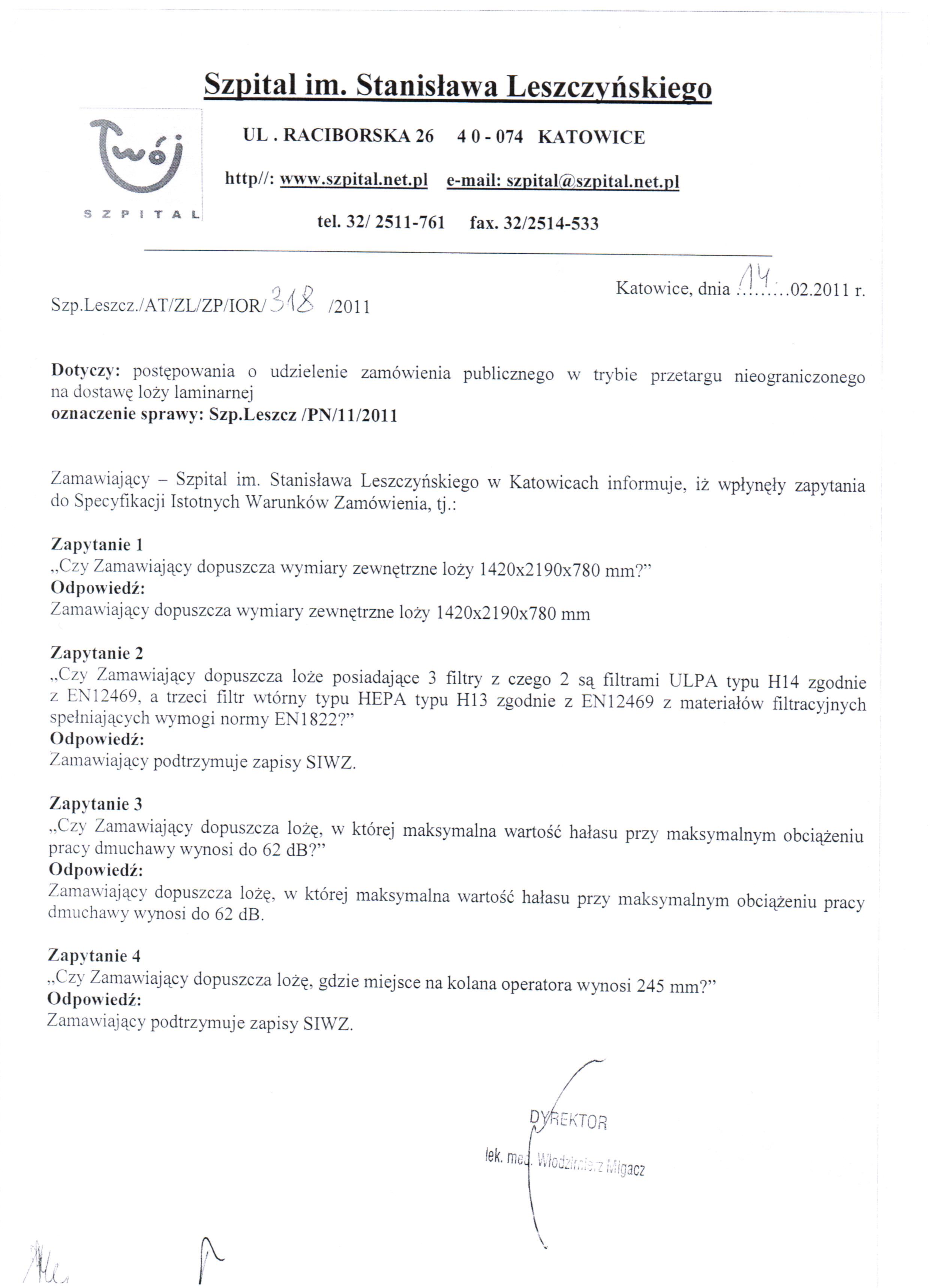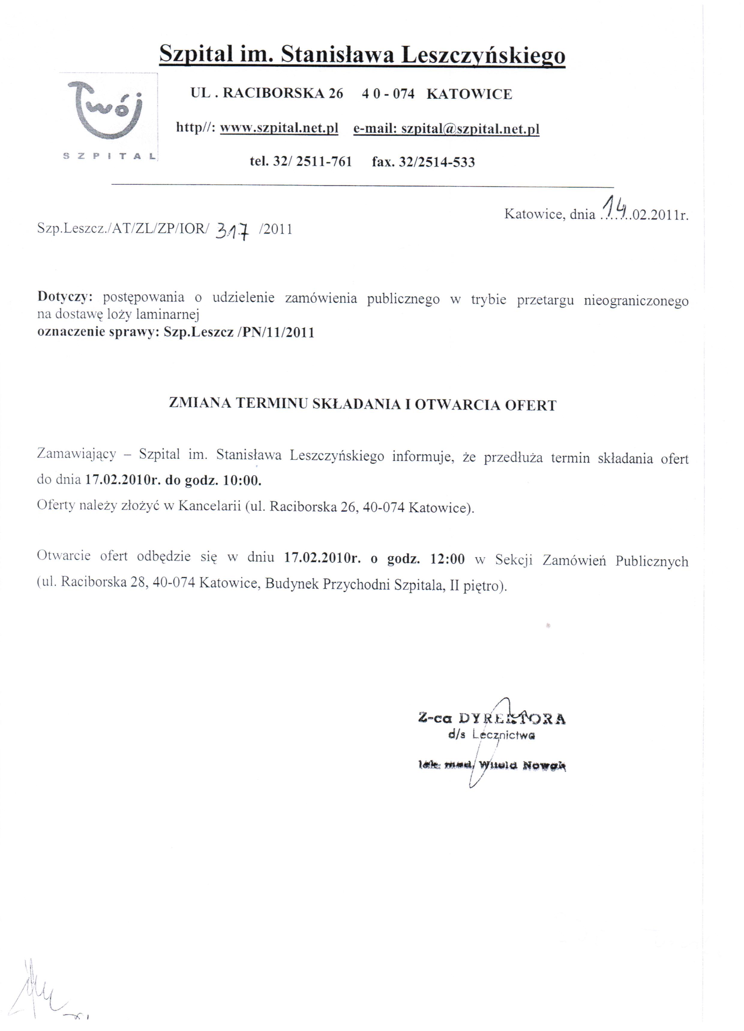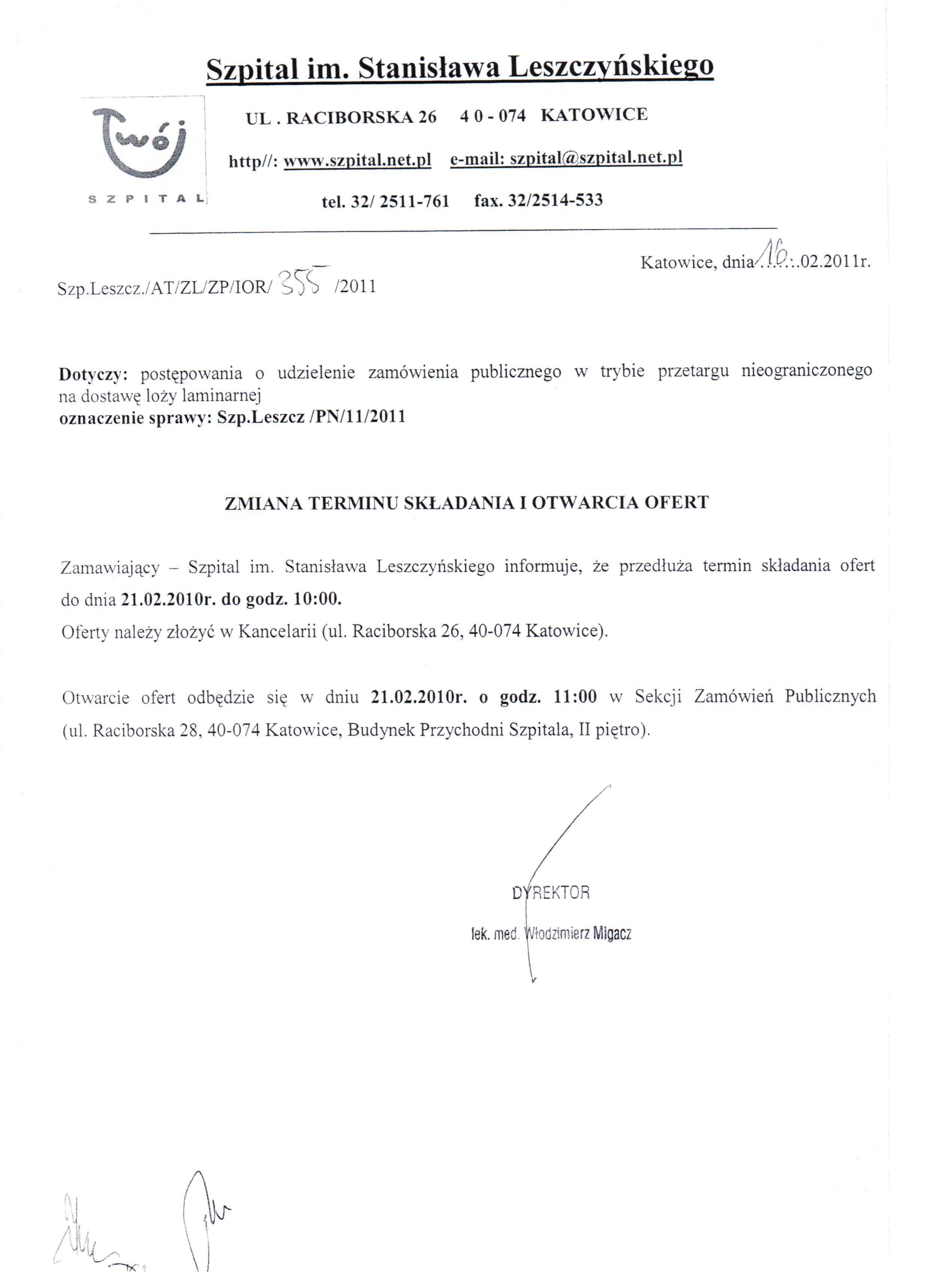 w dniu 15.02.2011r. o godz. 11:00 w 40-074 Katowice, ulica Raciborska 28, budynek Przychodni, II piętro, Sekcja Zamówień Publicznych.