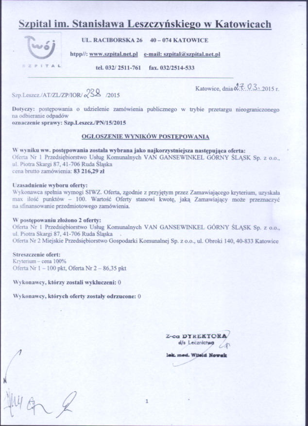 oznaczenie sprawy: Szp.Leszcz /PN/15/2015