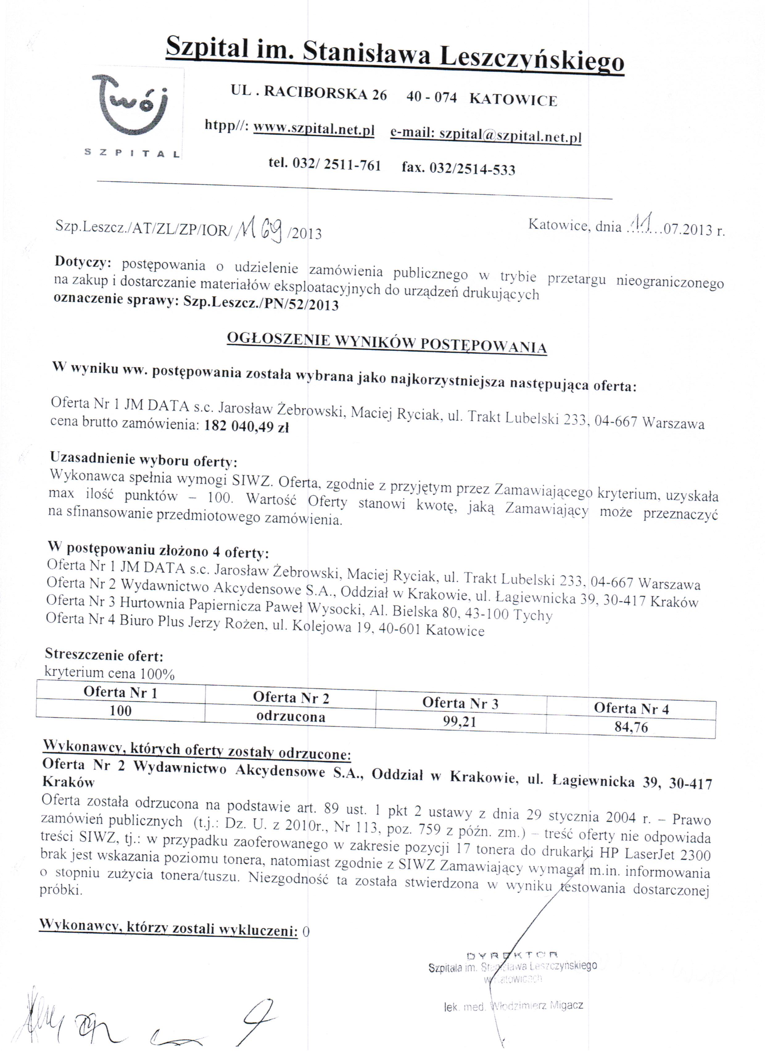 do dnia 12.06.2013r. do godz. 10:00 w 40-074 Katowice, ulica Raciborska 26, I piętro, Kancelaria Dyrektora