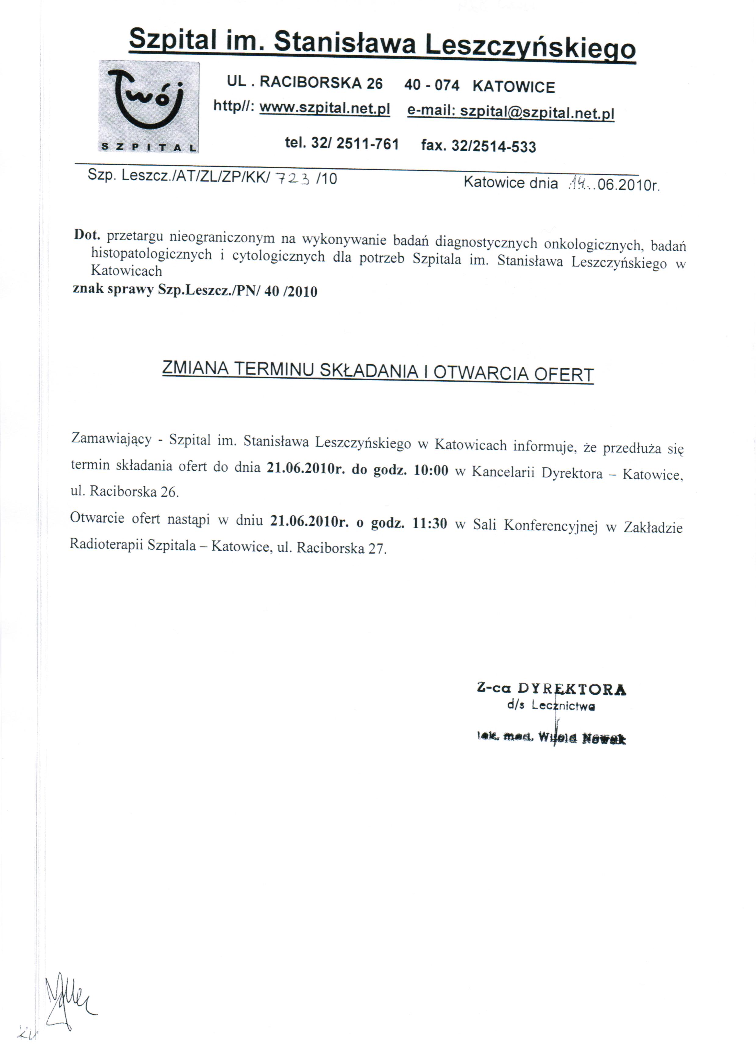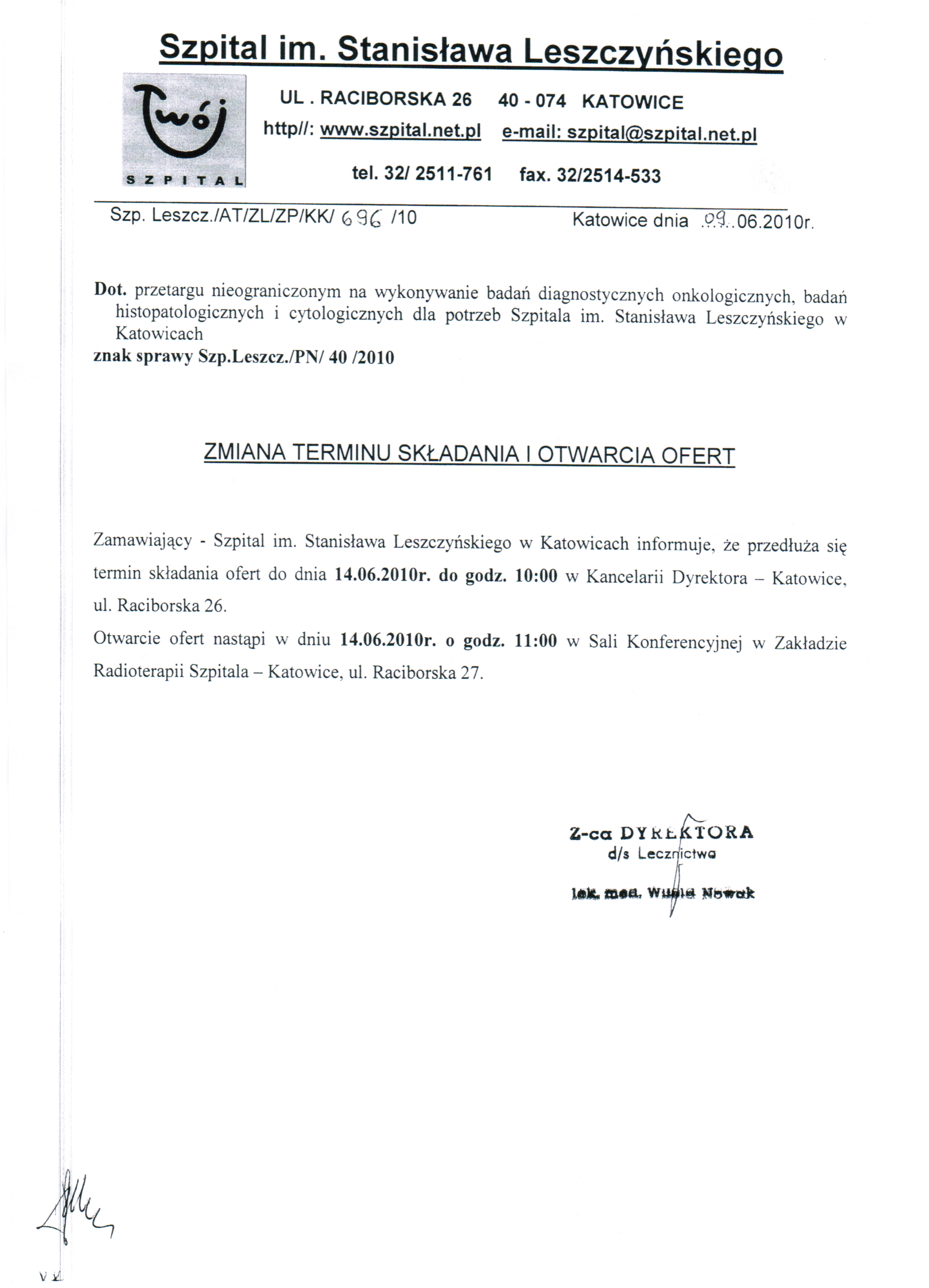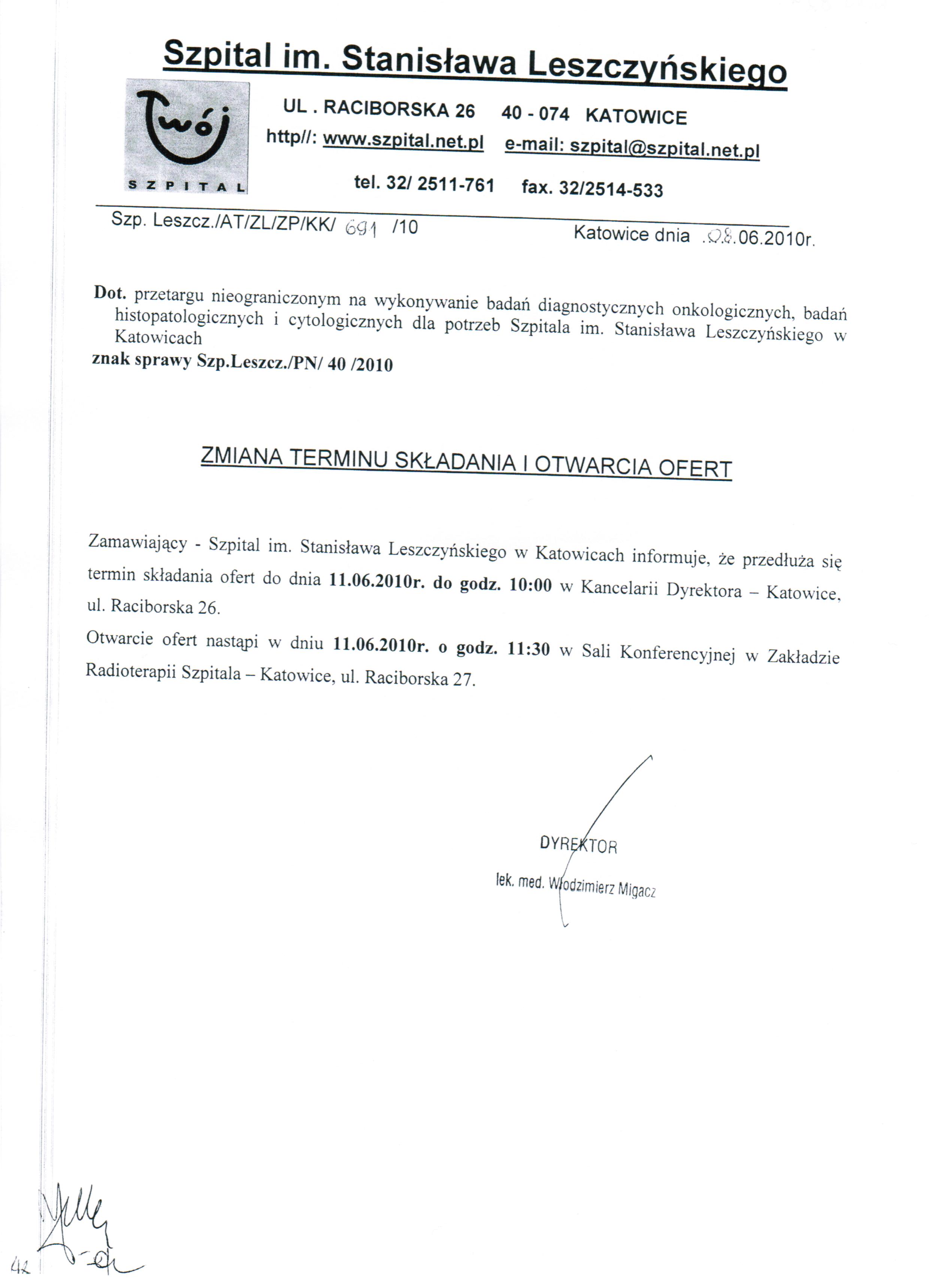 do dnia 09.06.2010 r. do godz. 10:00 w Kancelarii Dyrektora Szpitala w Katowicach przy ul. Raciborskiej 26.