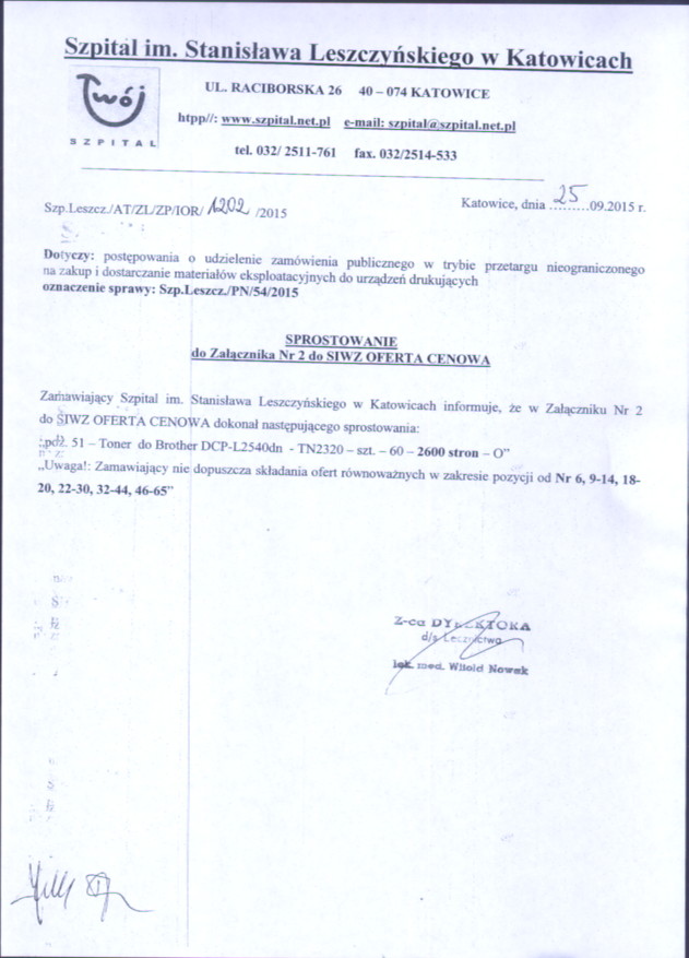 oznaczenie sprawy: Szp.Leszcz. /PN/54/2015