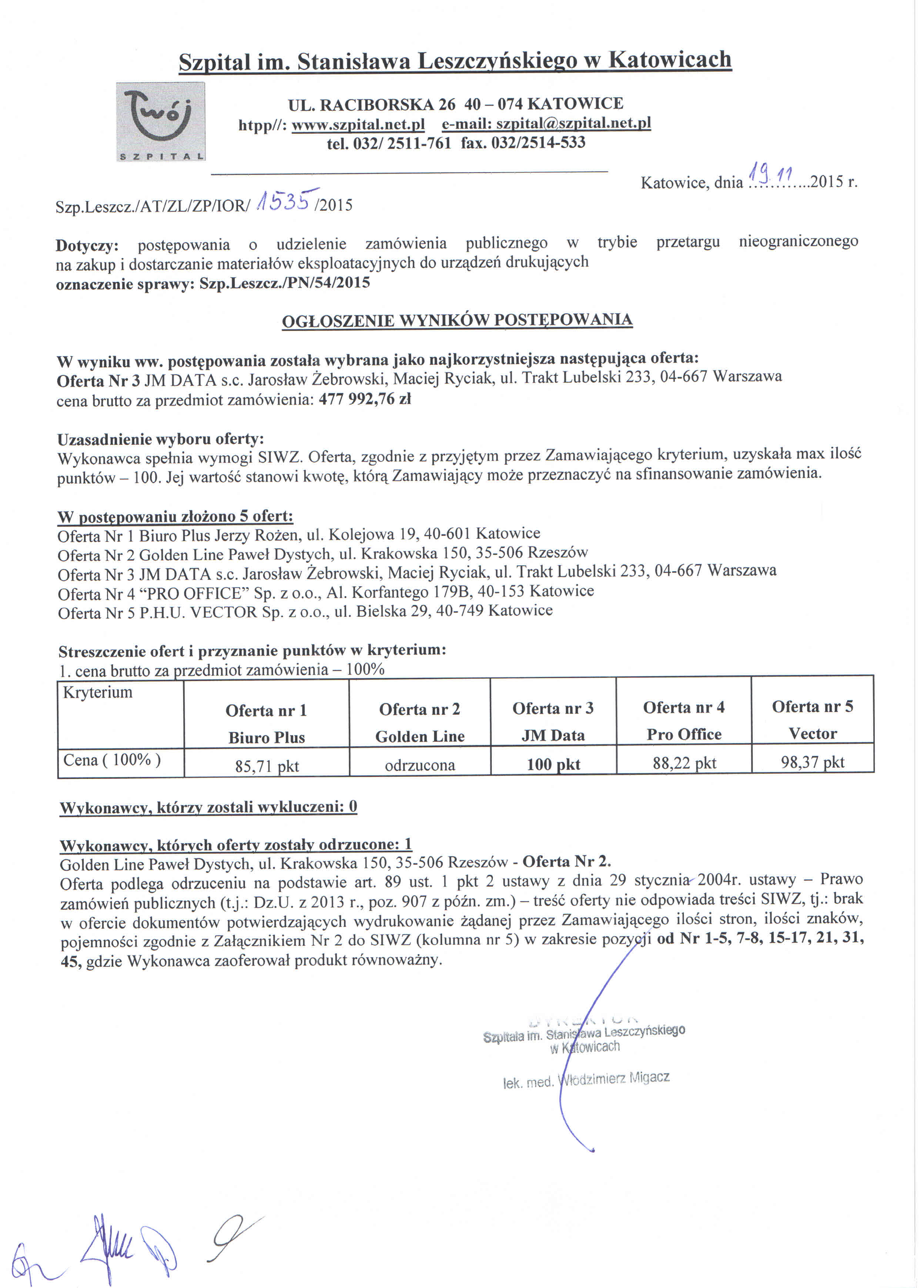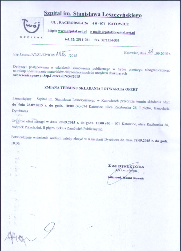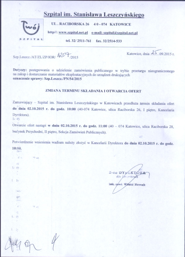 w dniu 23.09.2015r. o godz. 11:00 w 40-074 Katowice, ulica Raciborska 28, budynek Przychodni, II piętro, Sekcja Zamówień Publicznych.